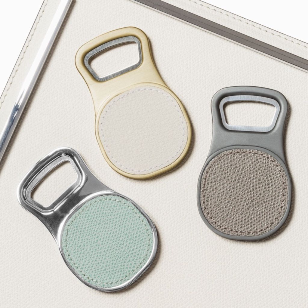 Metal structure available in different finishes featuring fine leather inserts on both sides.