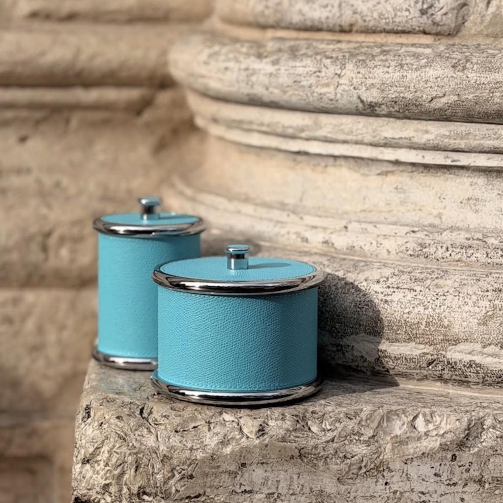 The rigid cylindrical main volumes are rendered softer by the smooth decorative rounded edges, while the finest Italian leather, with its velvety texture, is combined with one among three finishes
