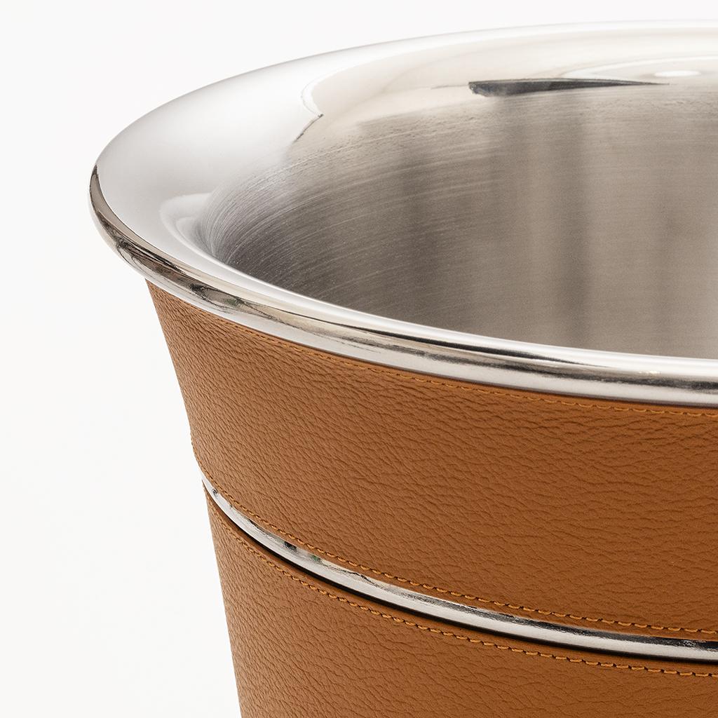 This champagne bucket features an insulated double-chamber polished steel structure.