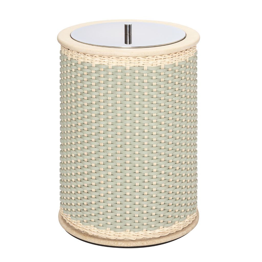 LEATHER & RATTAN BIN WITH LID - COURBET