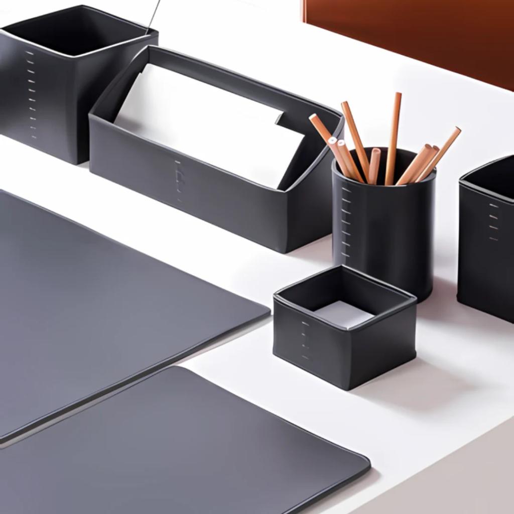 Saddle leather desk set.