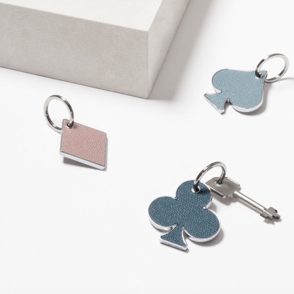 A series of double-sided keyrings featuring iconic shapes where the leather is framed by a precious palladium-plated border. Opt for the real shagreen or the real crocodile version for something unique.