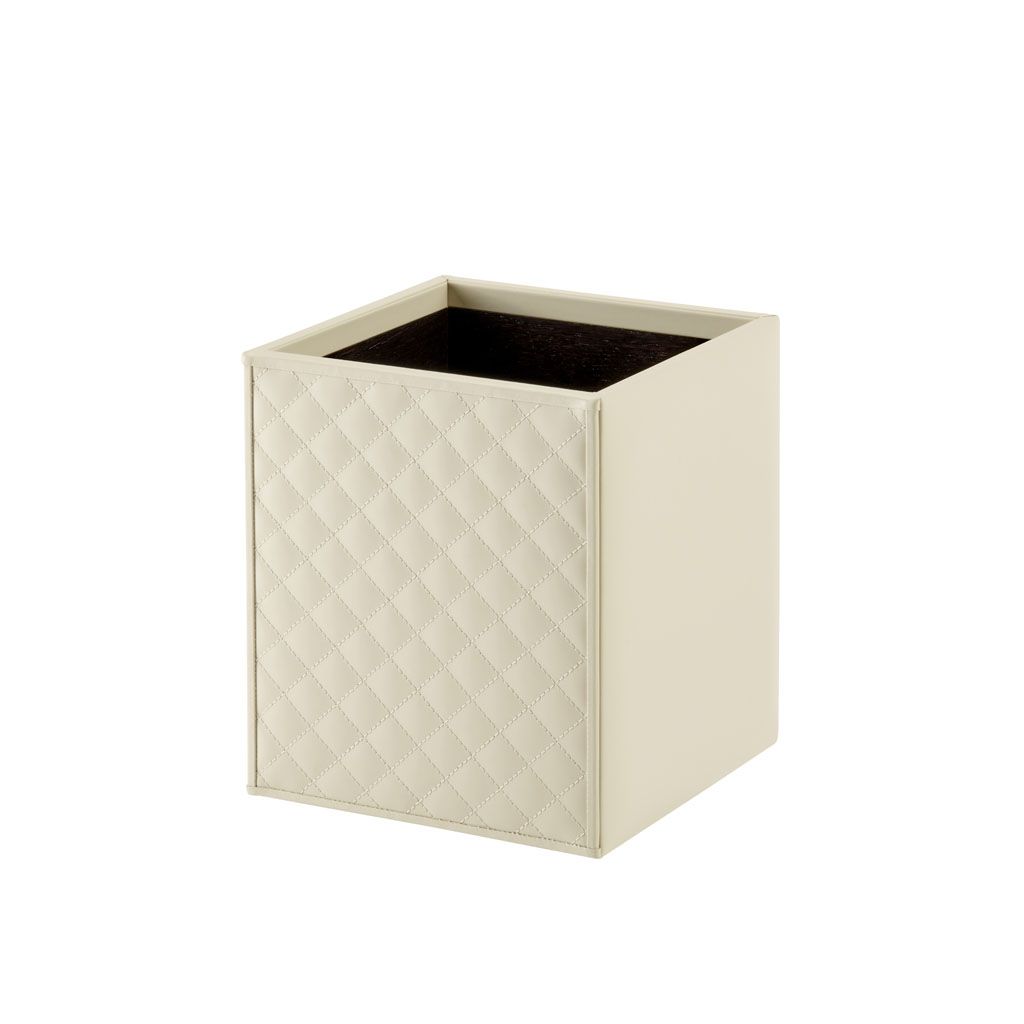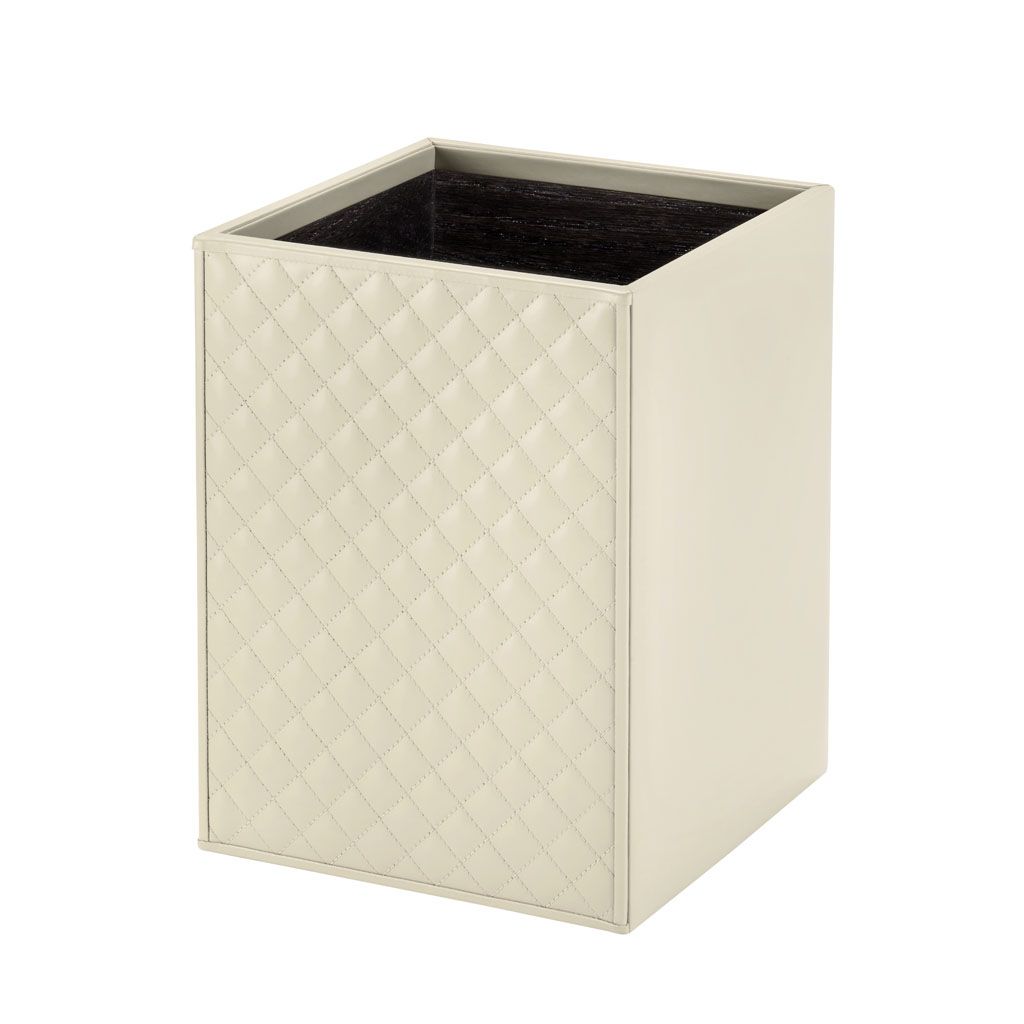 Waste basket, quilted diamonds leather on two sides, lining in varnished wood.