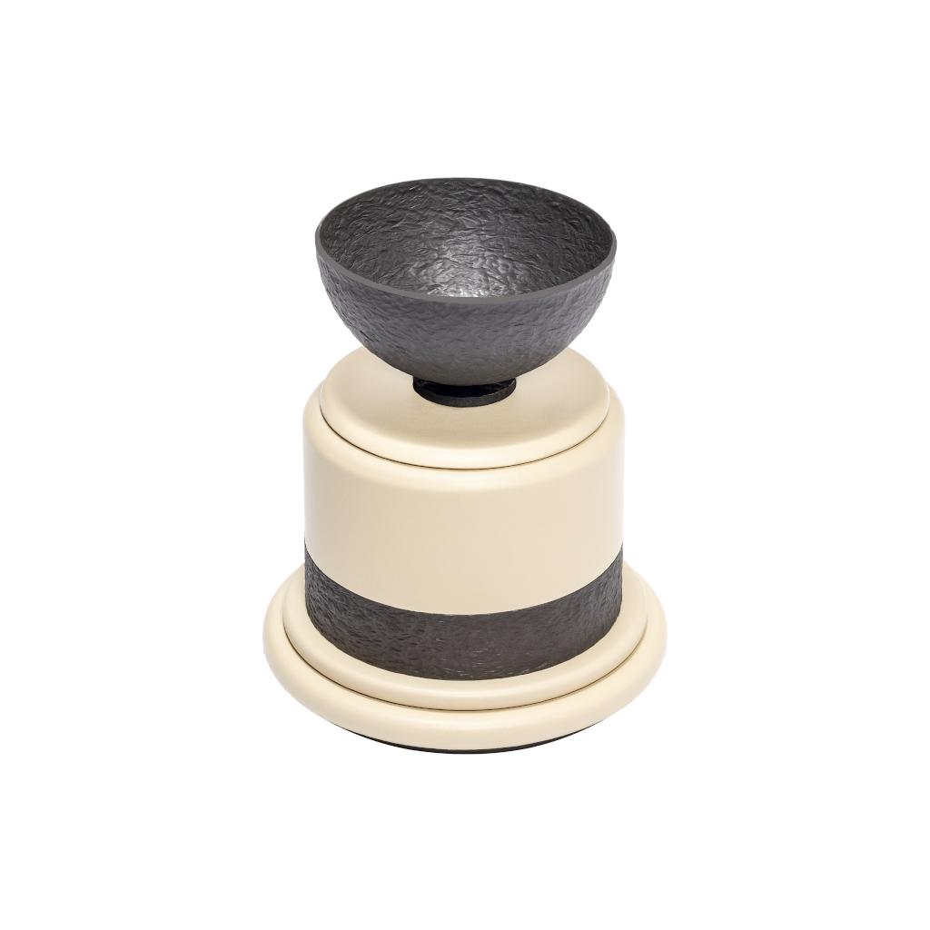 Dune takes form from gestures of use rather than from ceremony alone. Incense boxes, an incense holder are unified by smooth, rounded silhouettes, wrapped in leather and traced with accents of hammered, burnished bronze. The metal surfaces carry gentle irregularities, like dunes seen from above, marked by wind, softened by time, catching light with a warm, shifting depth. While conceived with Ramadan in mind, Dune speaks to moments of gathering, reflection, and hospitality, yet each piece moves naturally beyond a single occasion. The trays lend themselves to table settings and shared offerings; the incense elements become enduring accents within the interior, holding scent, memory, and atmosphere. Grounded in clarity of form and intent, the collection distills a slow, tactile, and enduring rhythm into pieces designed to be used, kept close, and revisited over time.