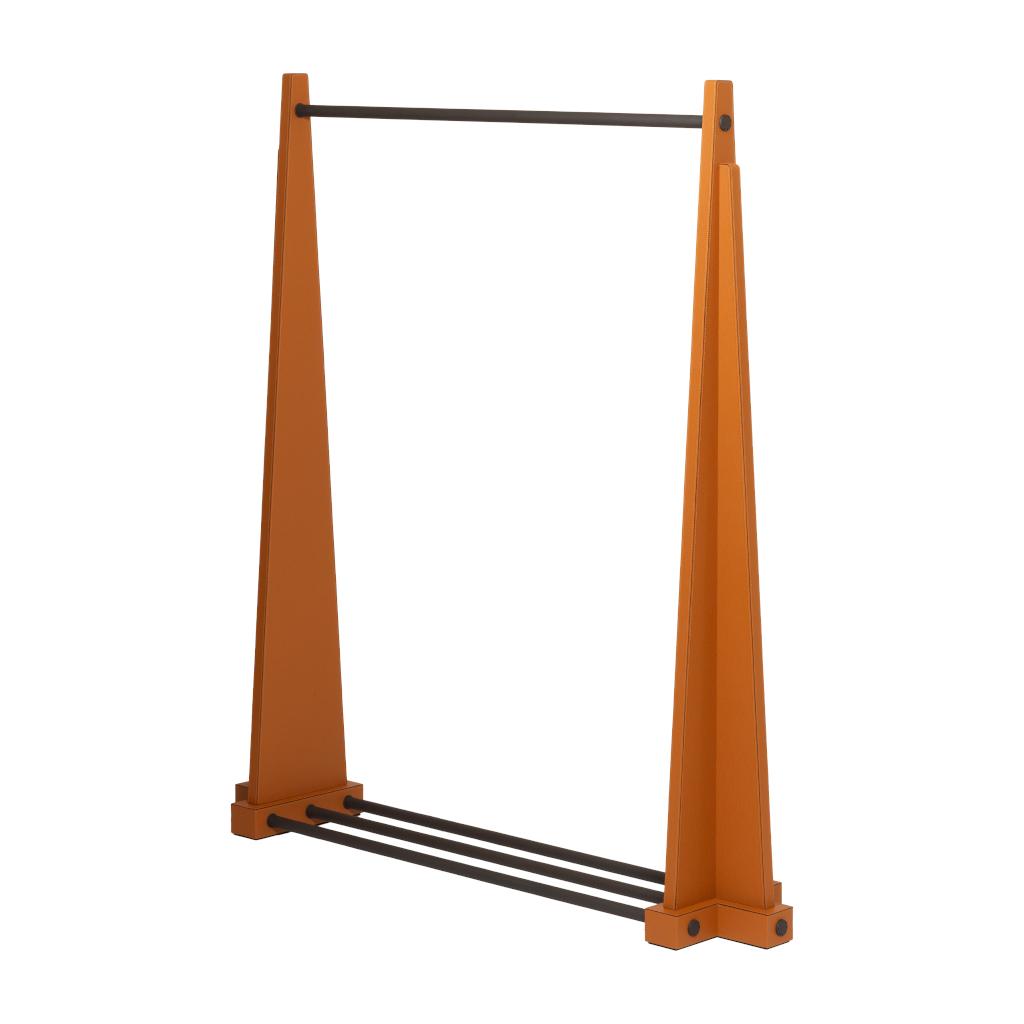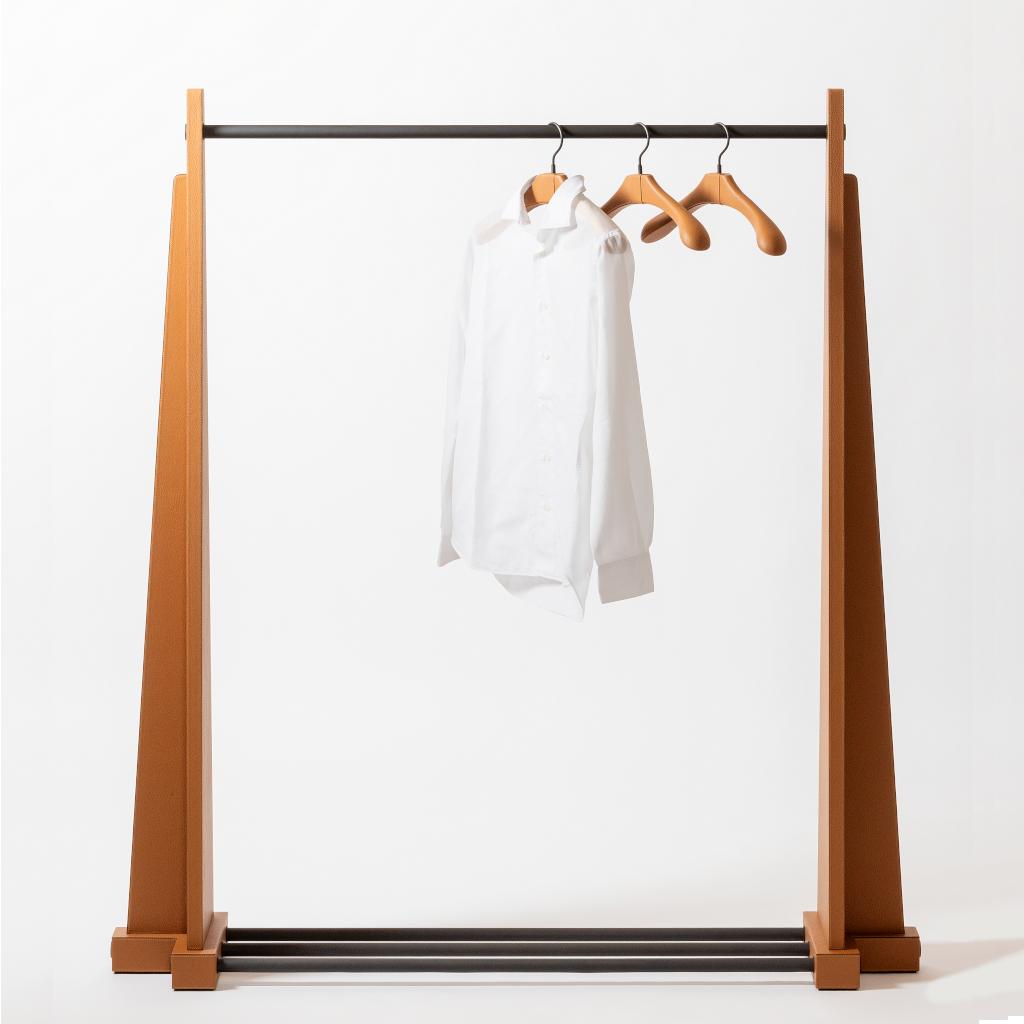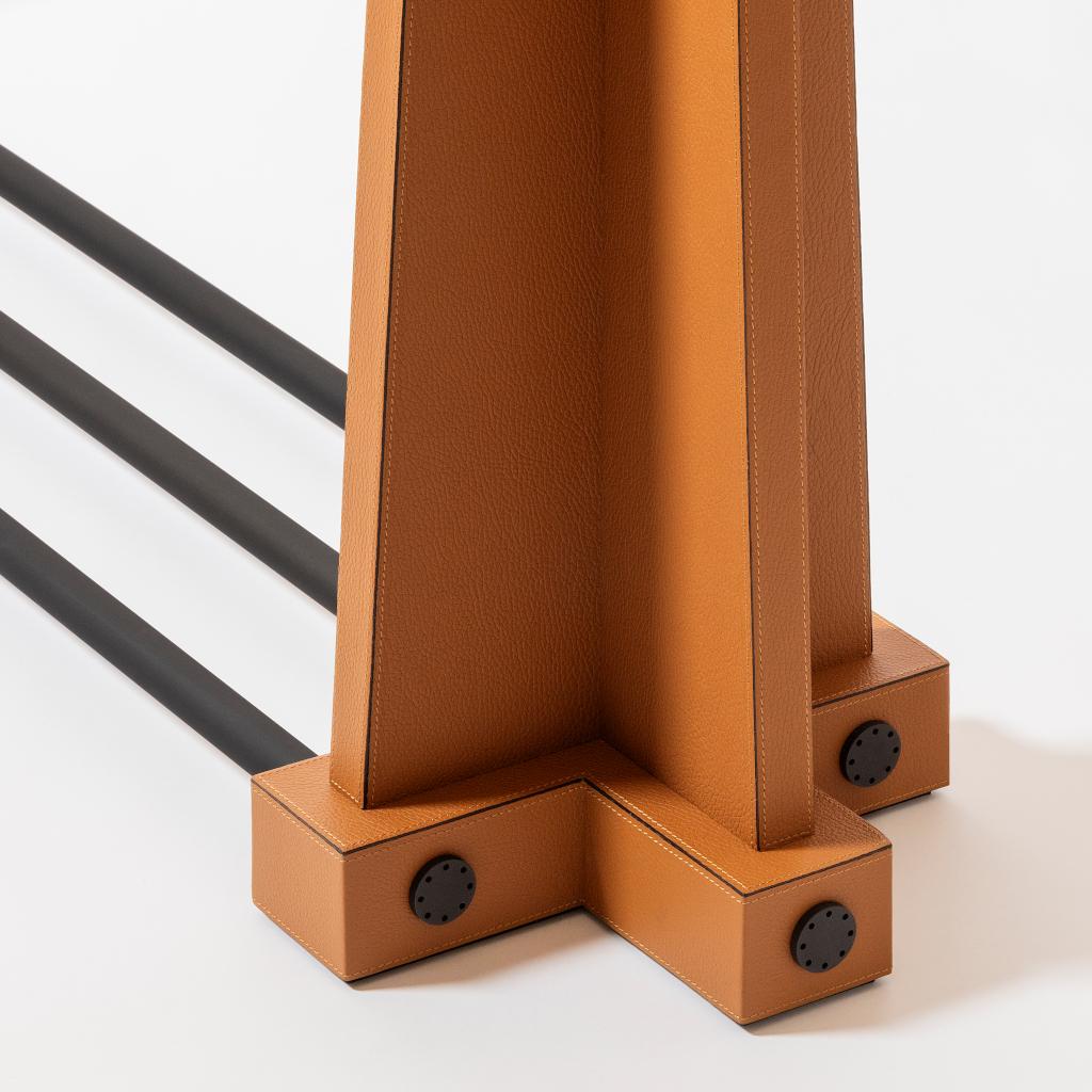 The geometry of the Edoardo clothes rack is precise and deliberate, lending a rigorous character to the leather-covered structure, subtly accented by metal details. Designed to organize garments with clarity and ease, it brings a composed, understated elegance to dressing areas and interiors alike.