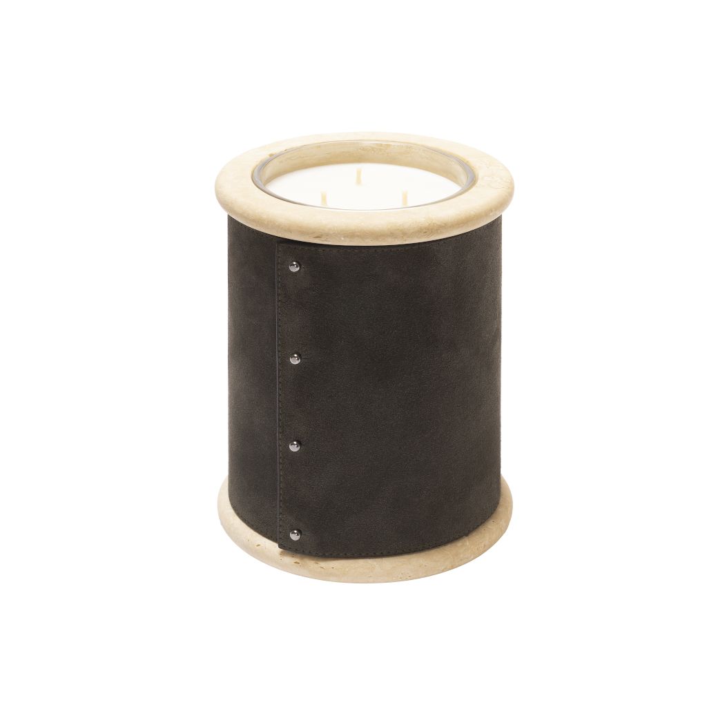 LEATHER&MARBLE CANDLE HOLDER HIGH LARGE - ERCOLANO