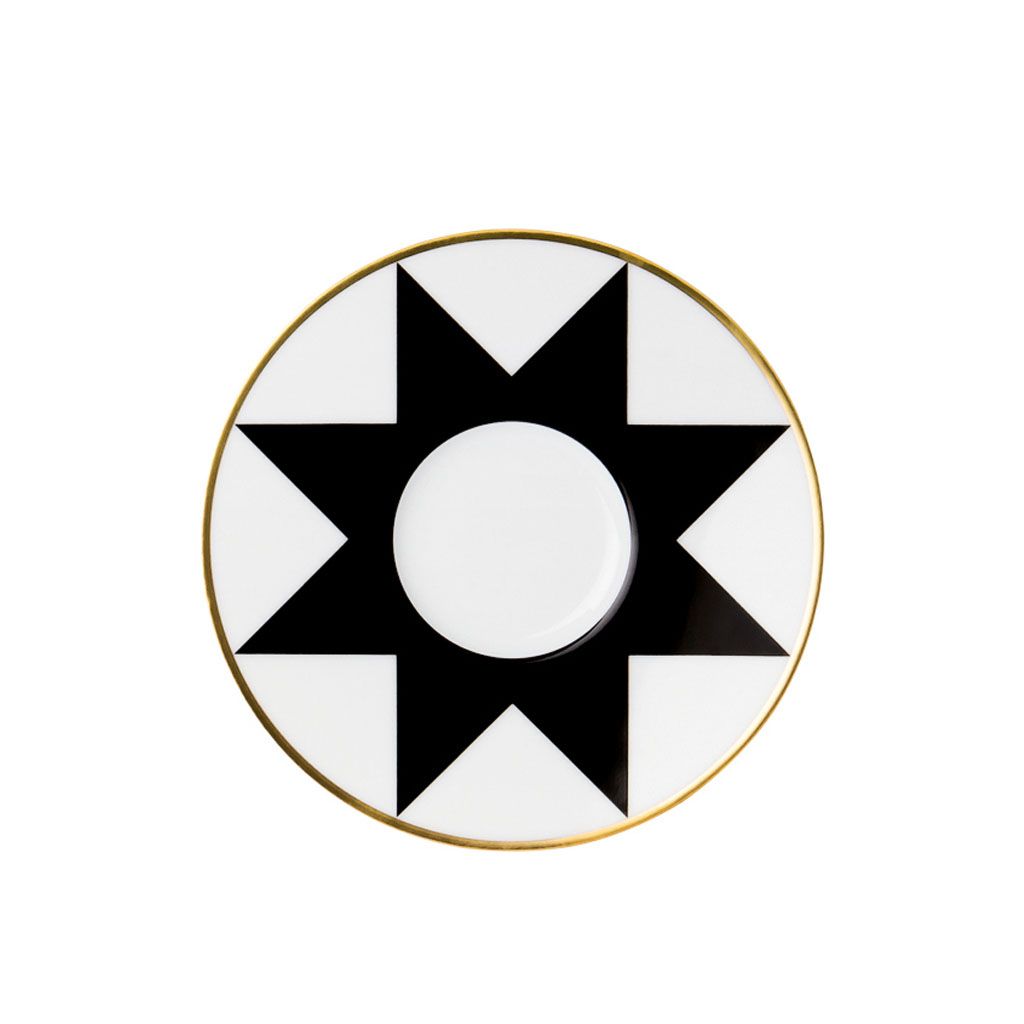 Espresso saucer born from the combination of wafer-thin porcelain and the finest precious metal.