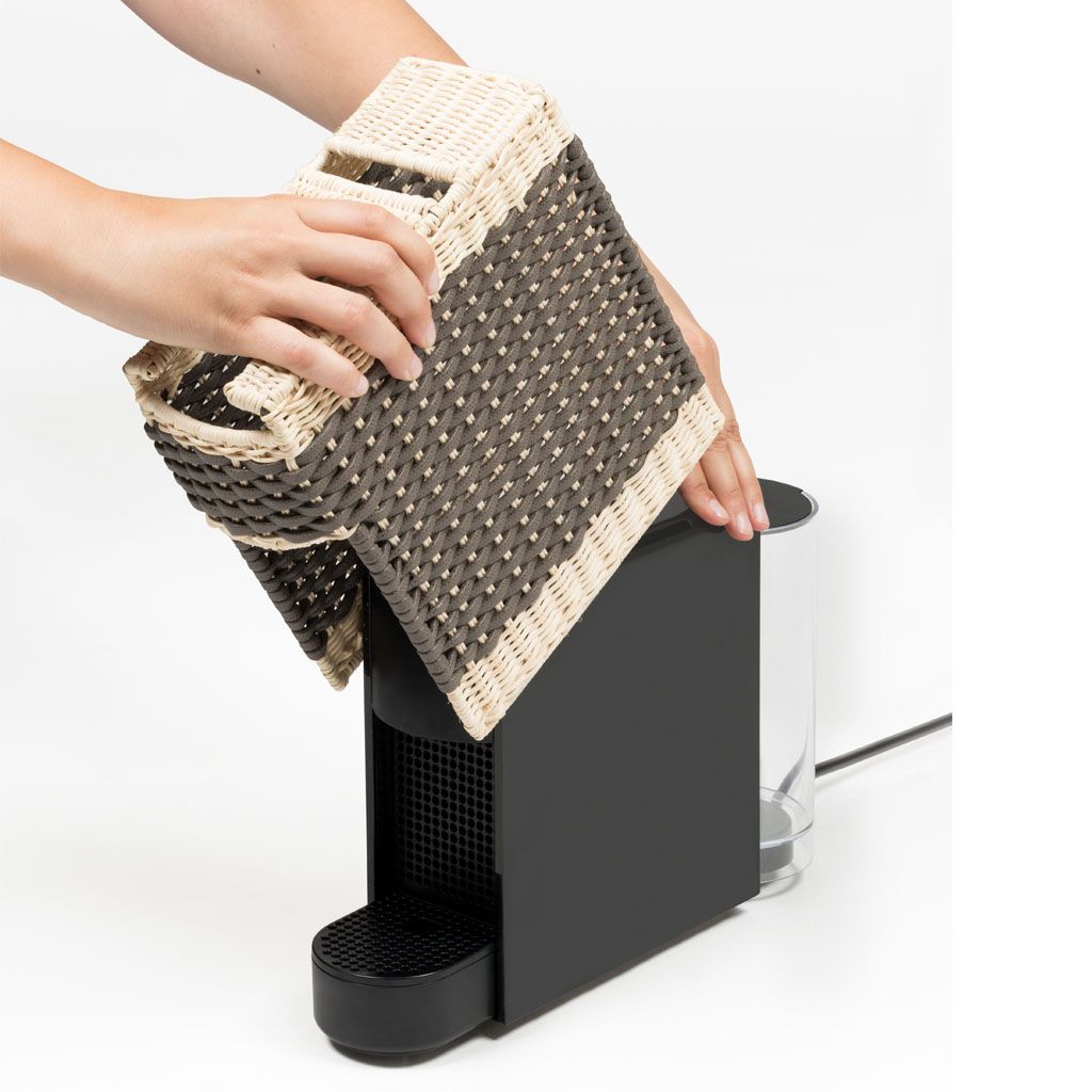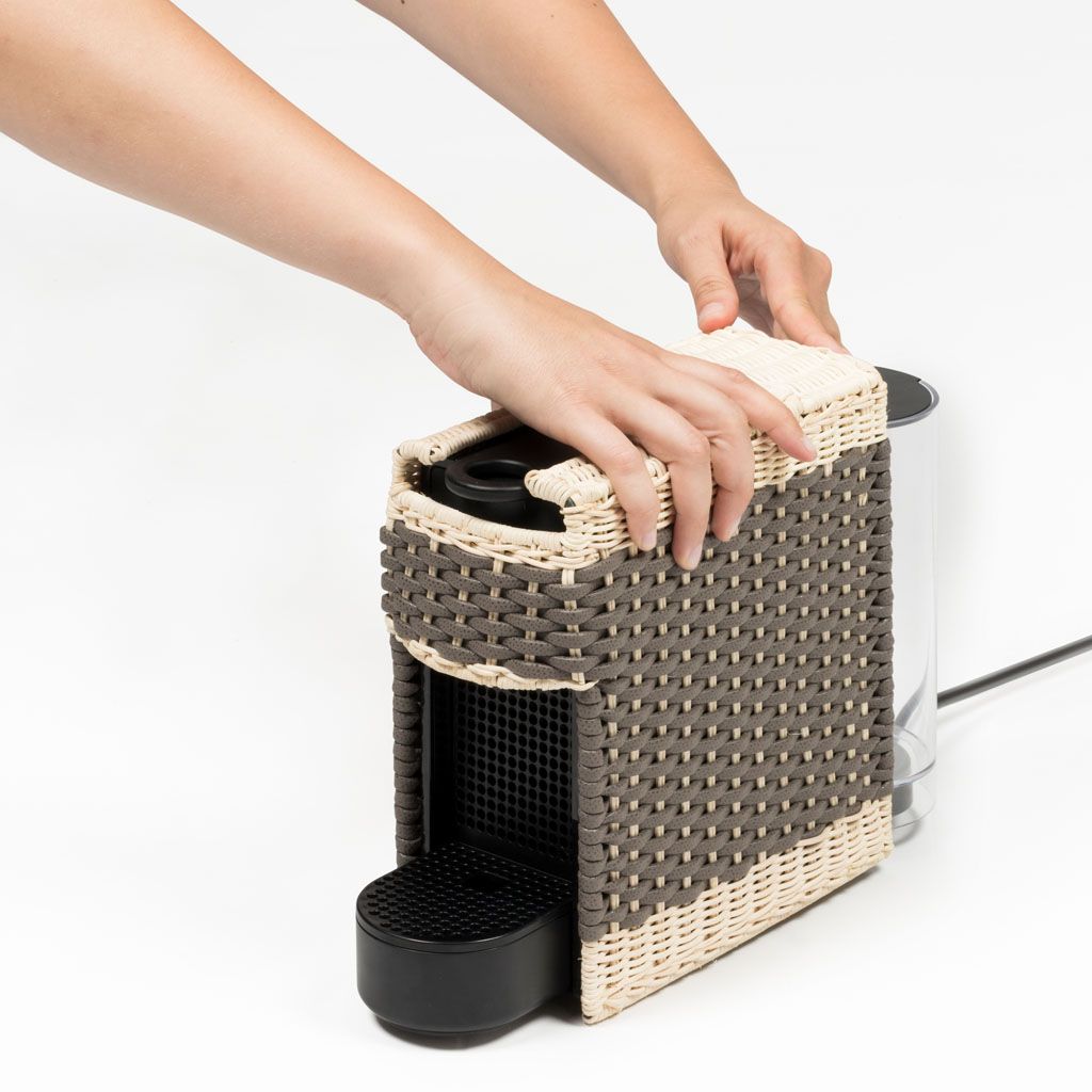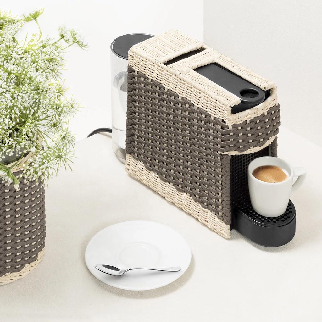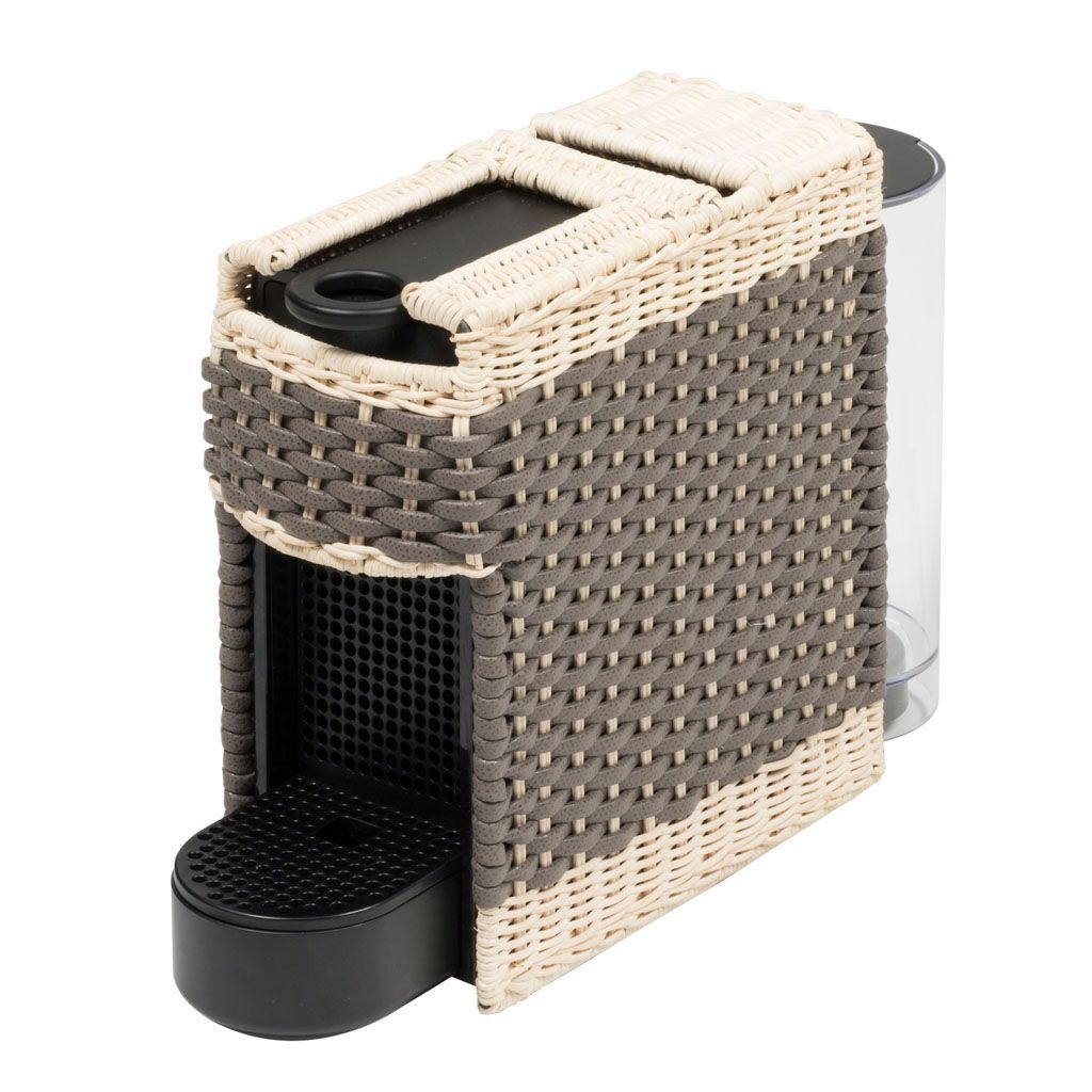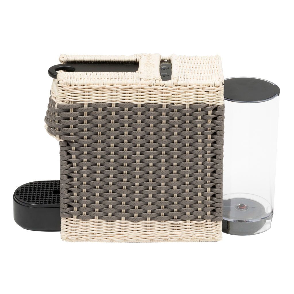 Original Nespresso machine with removable cover made in woven leather and rattan.