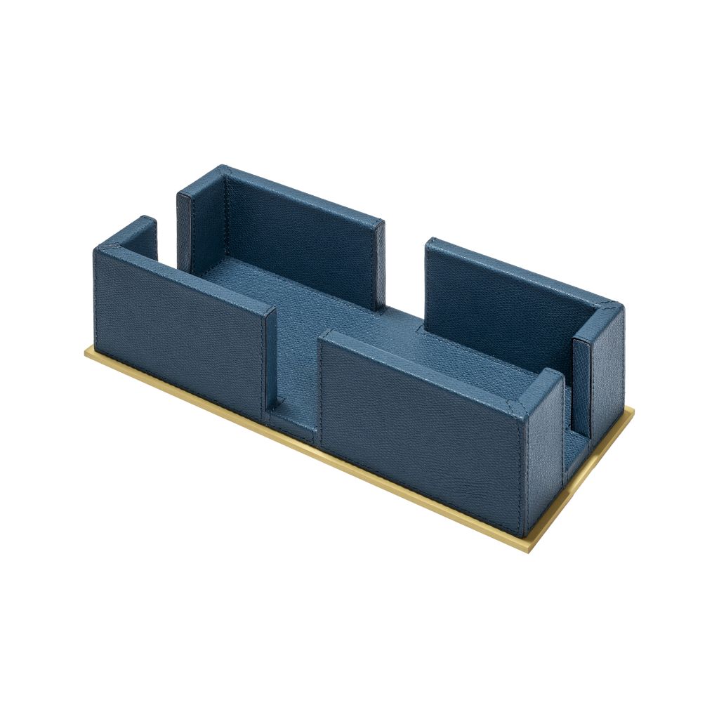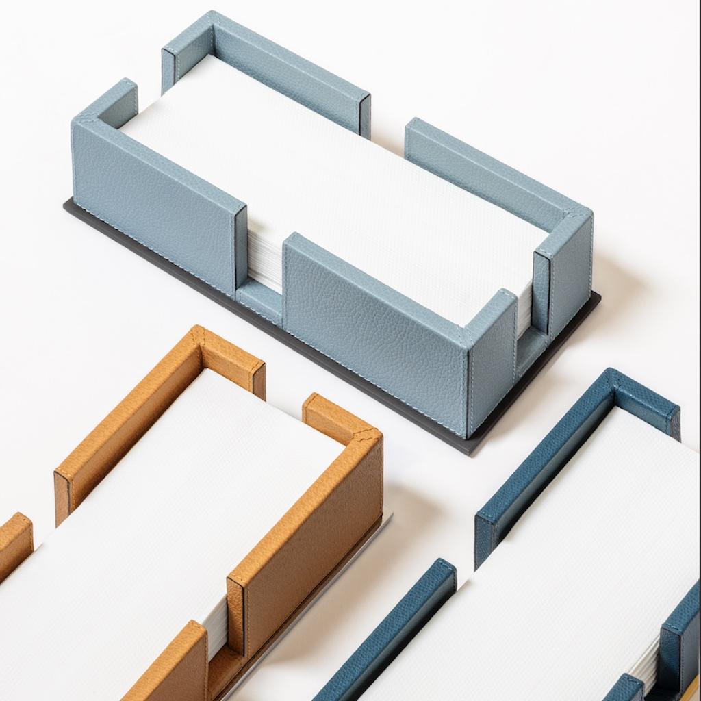 Leather-covered wood structure with metal base and top frames offered in three finishes. A non-slip, waterproof rubber base completes the underside.