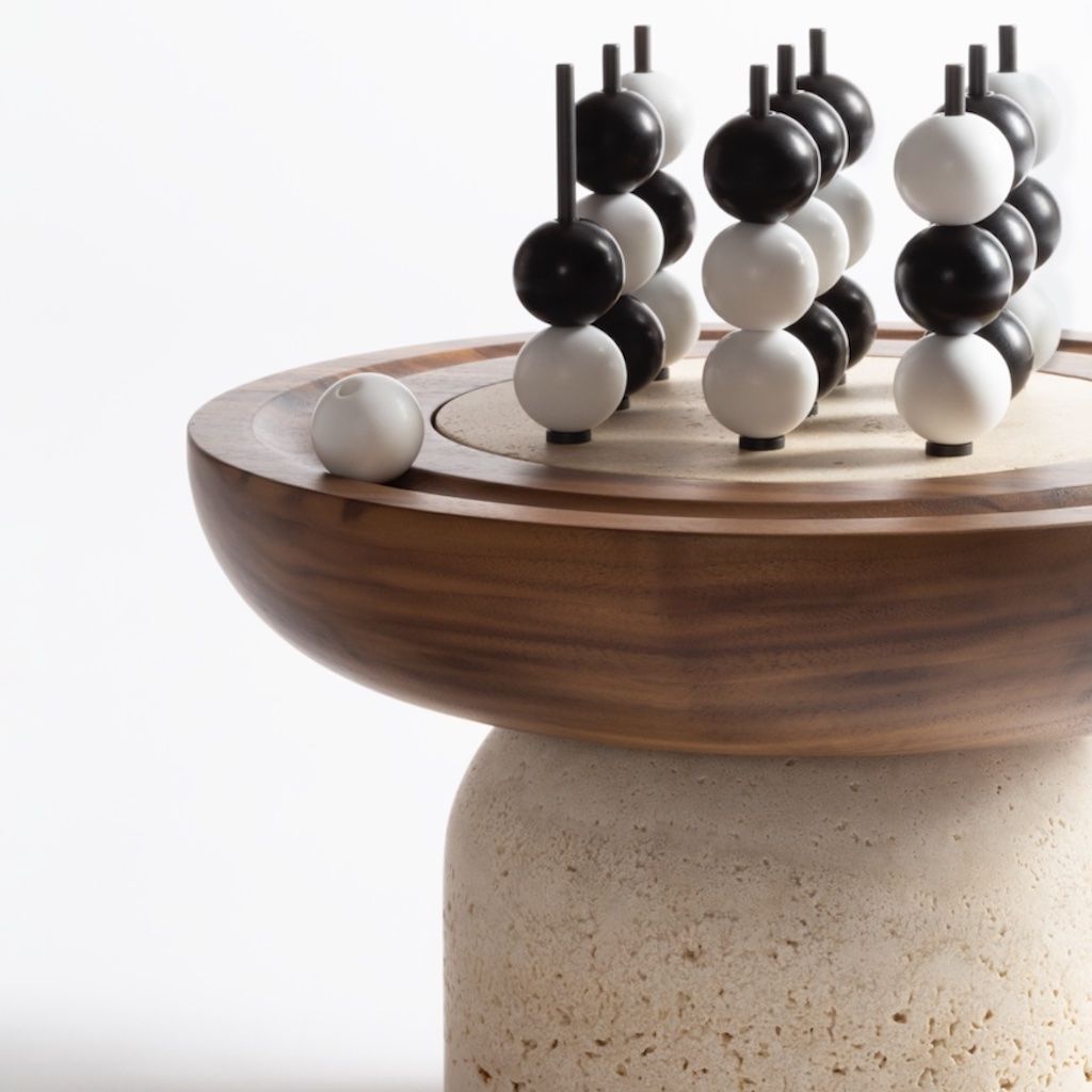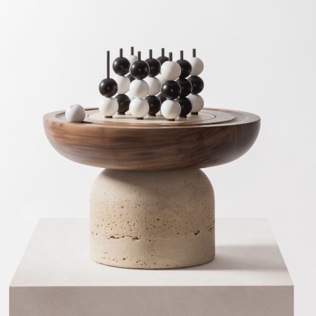 Large volumes in wood and stone are carved and sculpted to create playing fields with modeled, almost primitive lines. Connection and reflection creations that define everyday landscape.