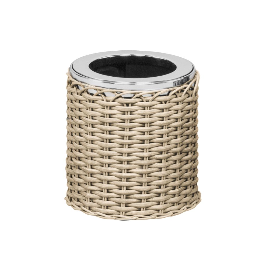 Rattan covered insulated brass structure with chrome-plated finish with replugging device for 0,7 L and 1 L bottles.
