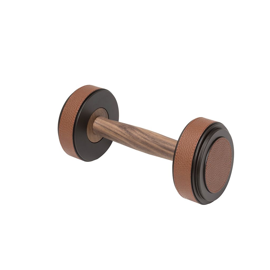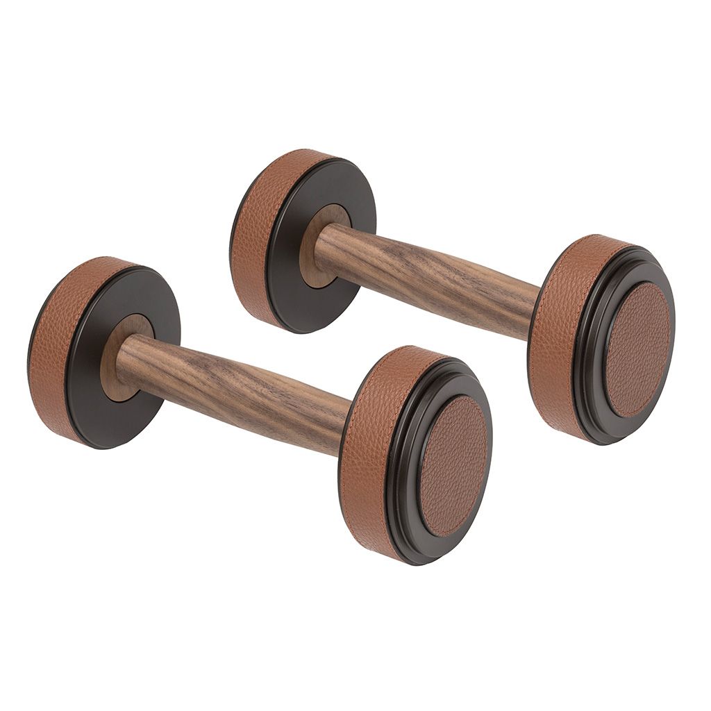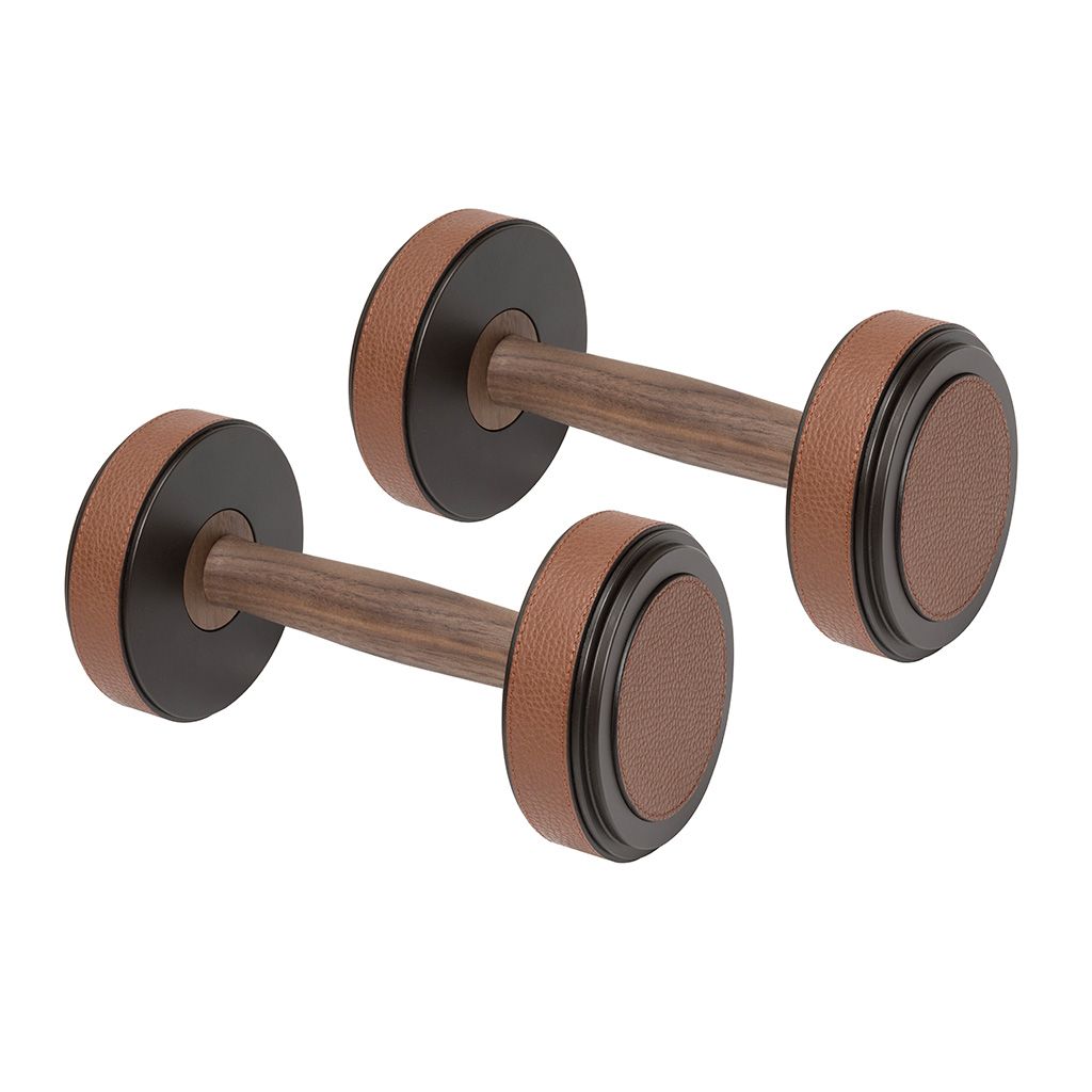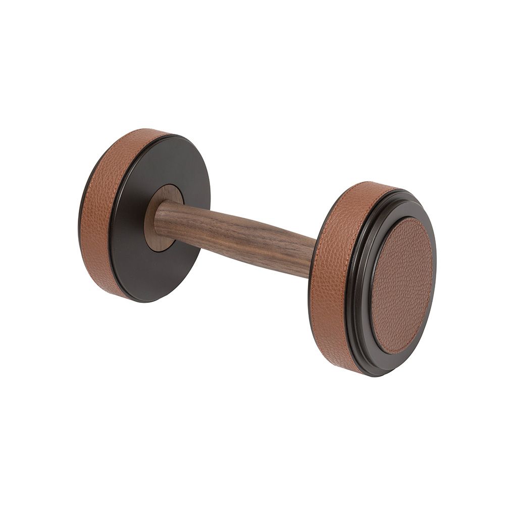 Metal structure available in different finishes and provided with leather inserts and walnut wood grip.