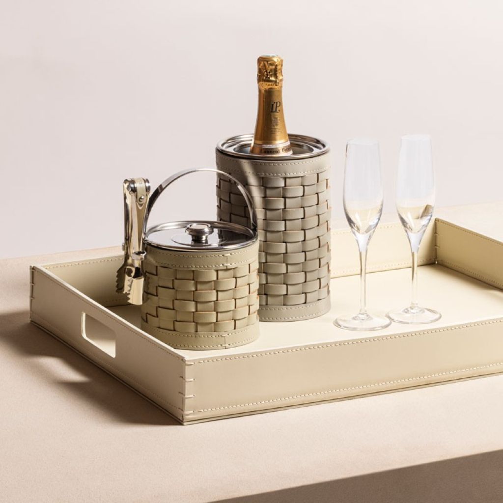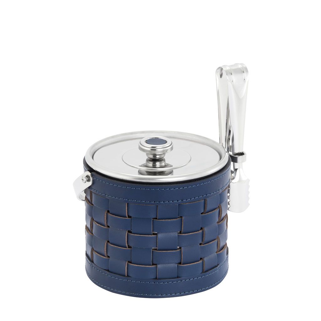 Stainless steel ice bucket covered with woven leather