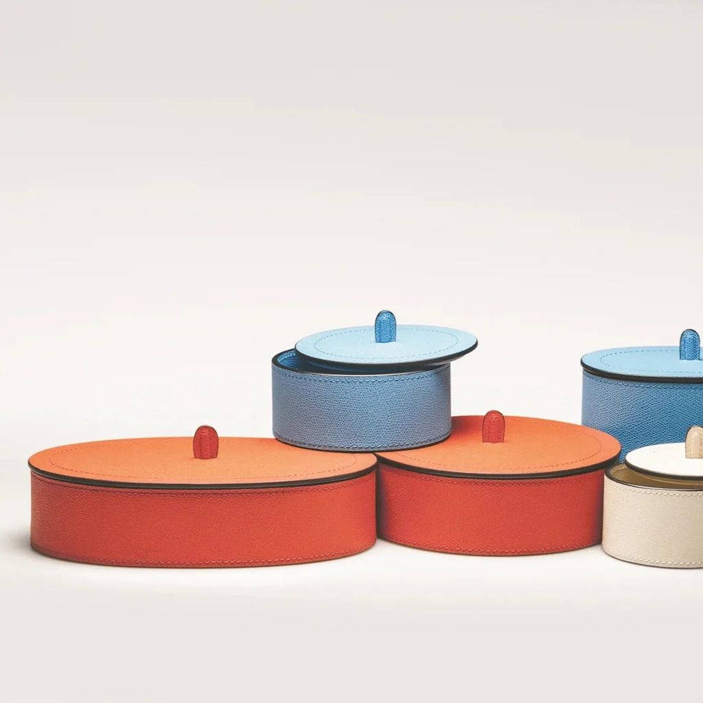 All leather covered. Removable lid.