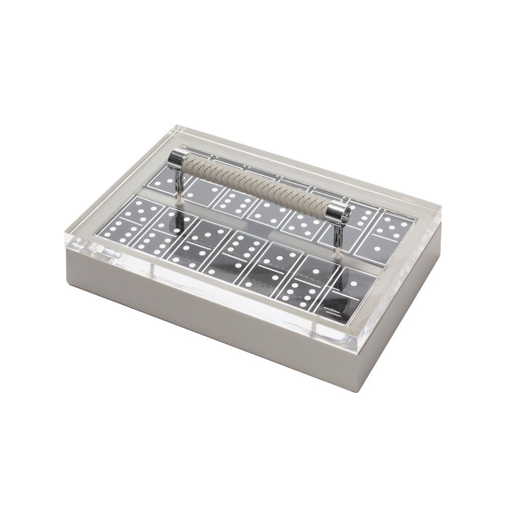 Set equipped with highly resistant glossy plexiglass domino pieces: choose between black or white finish.
