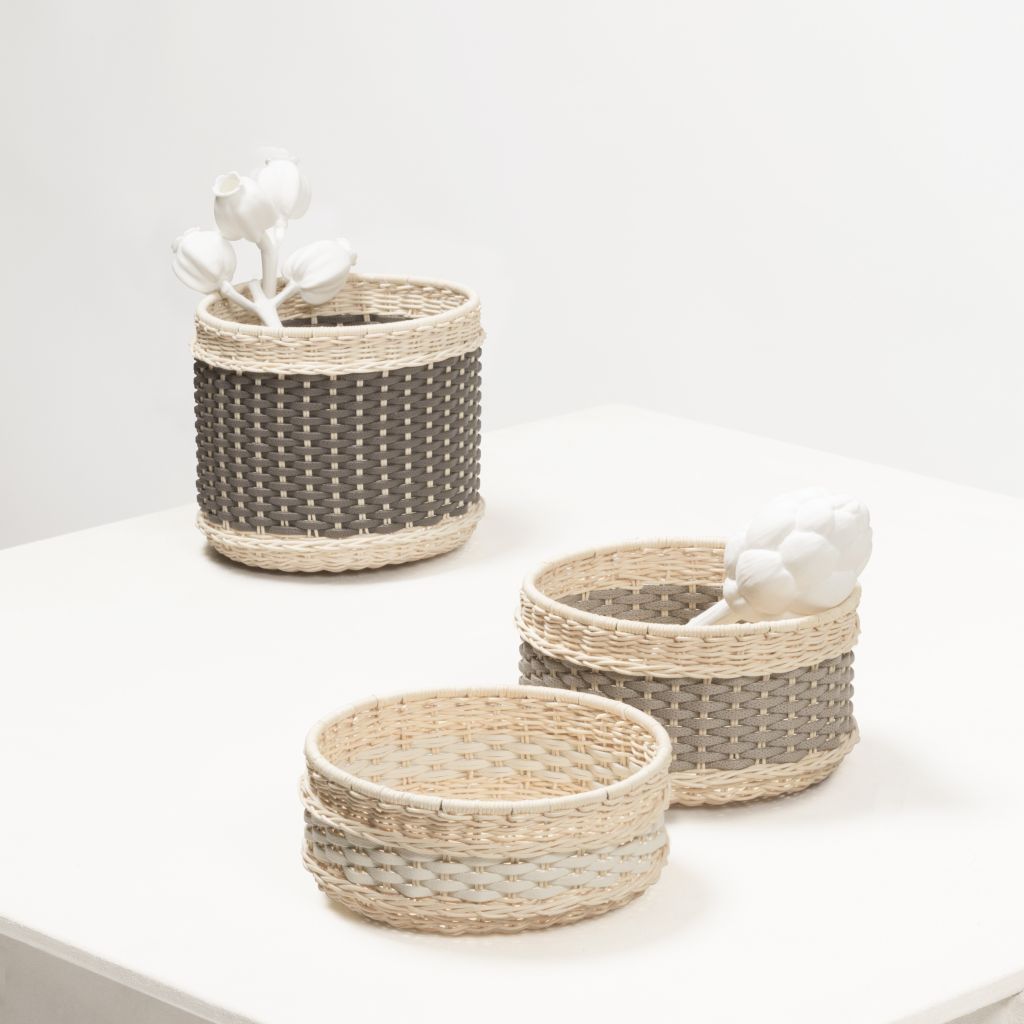 Structure made in woven leather and rattan.