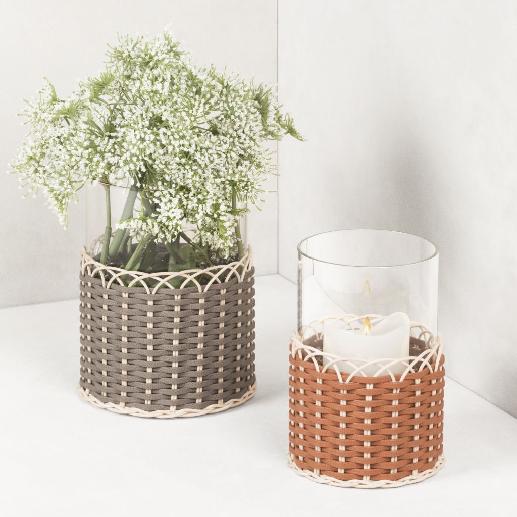 LEATHER & RATTAN CANDLE HOLDER/VASE - WIDEVILLE
