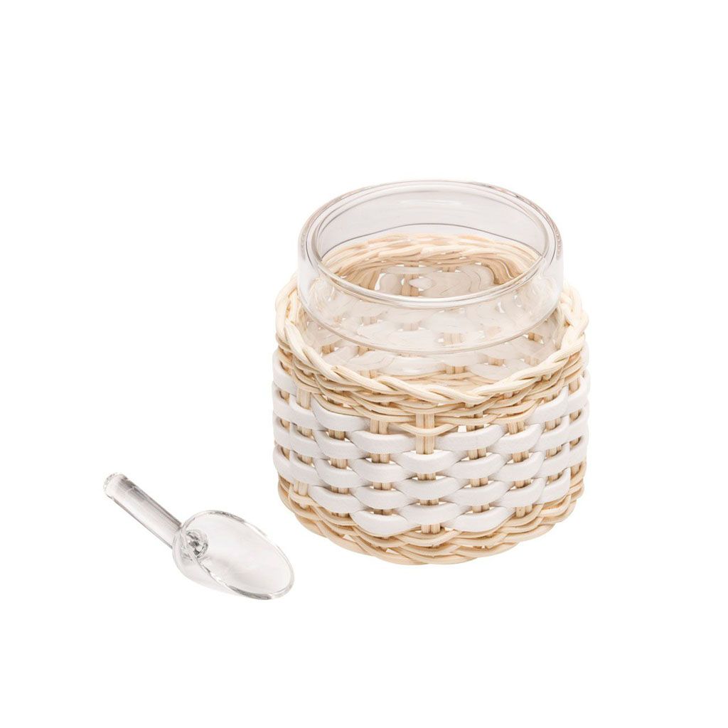 LEATHER & RATTAN SUGAR BOWL - DEAUVILLE