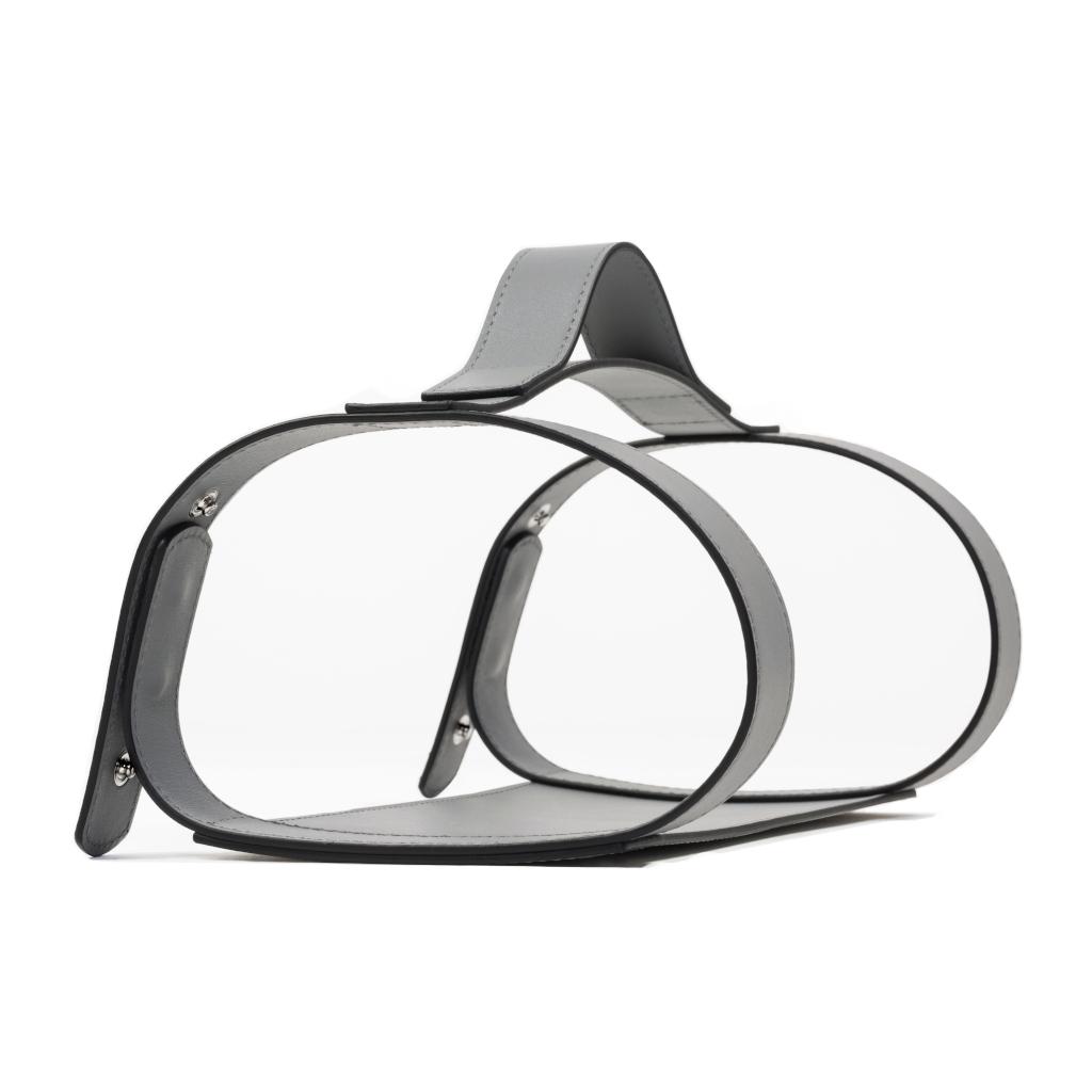 Leather holder for beach towels or blankets. Adjustable by automatic closure.