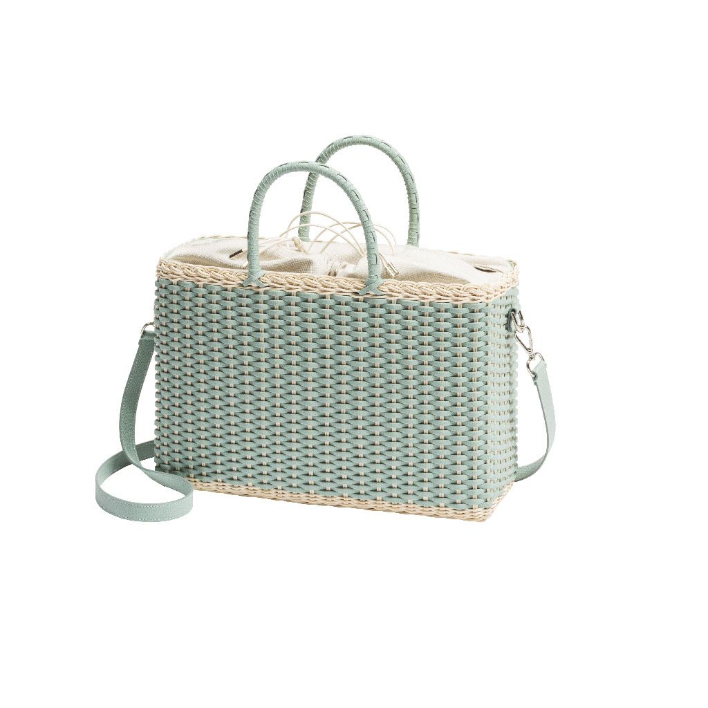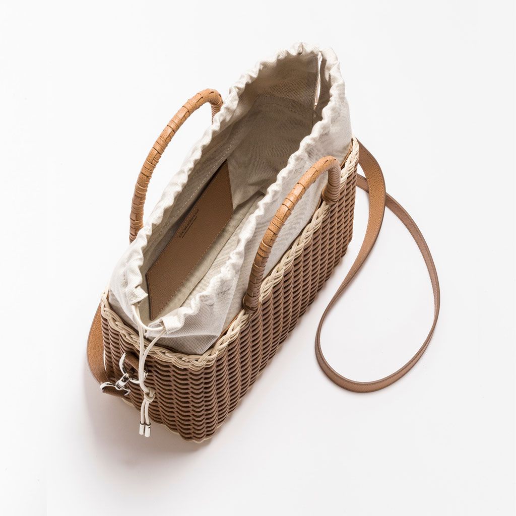 Made with the finest woven leather and rattan, this collection of compact day bags boasts a casual yet sophisticated attitude: the elegant shiny calfskin and the gentle freshness of rattan complement each other perfectly.
