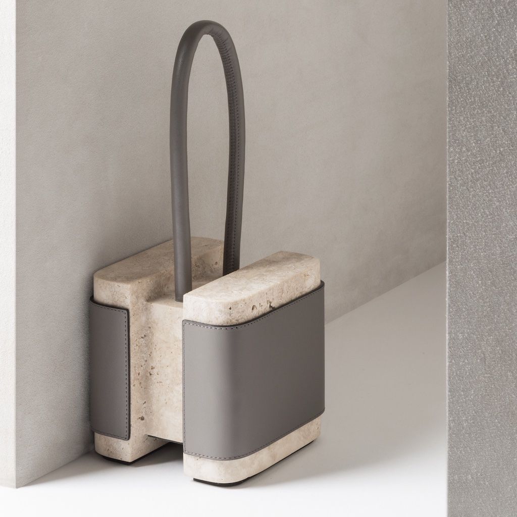 Materials: leather and travertine marble.