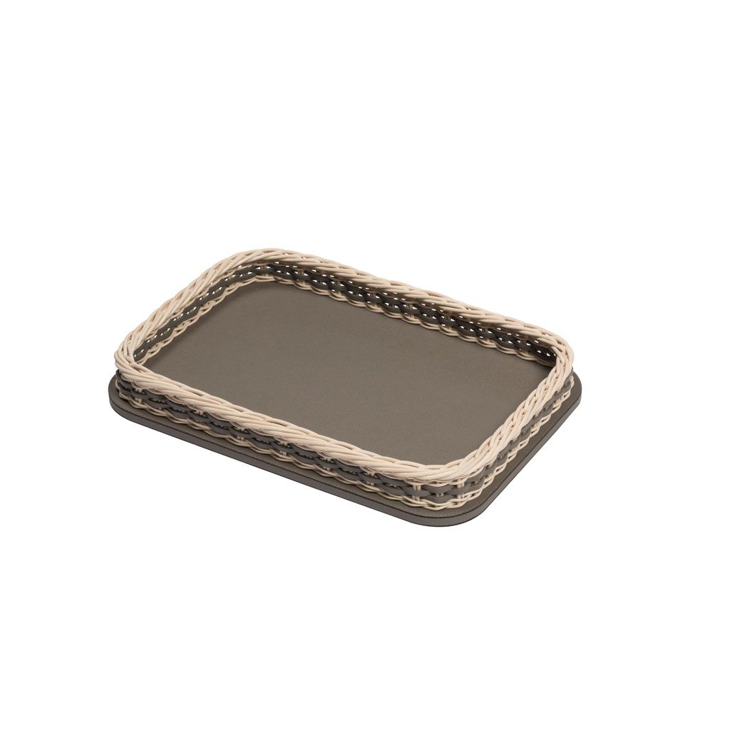 LEATHER&RATTAN TRAY RECTANGULAR - ORSAY