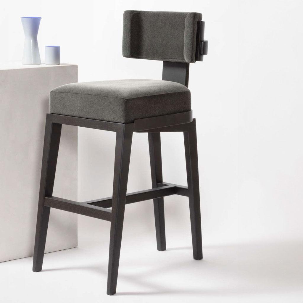 Materials: Canaletto walnut wood structure with upholstered leather cushions.