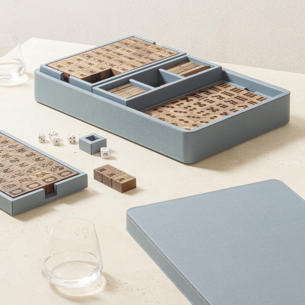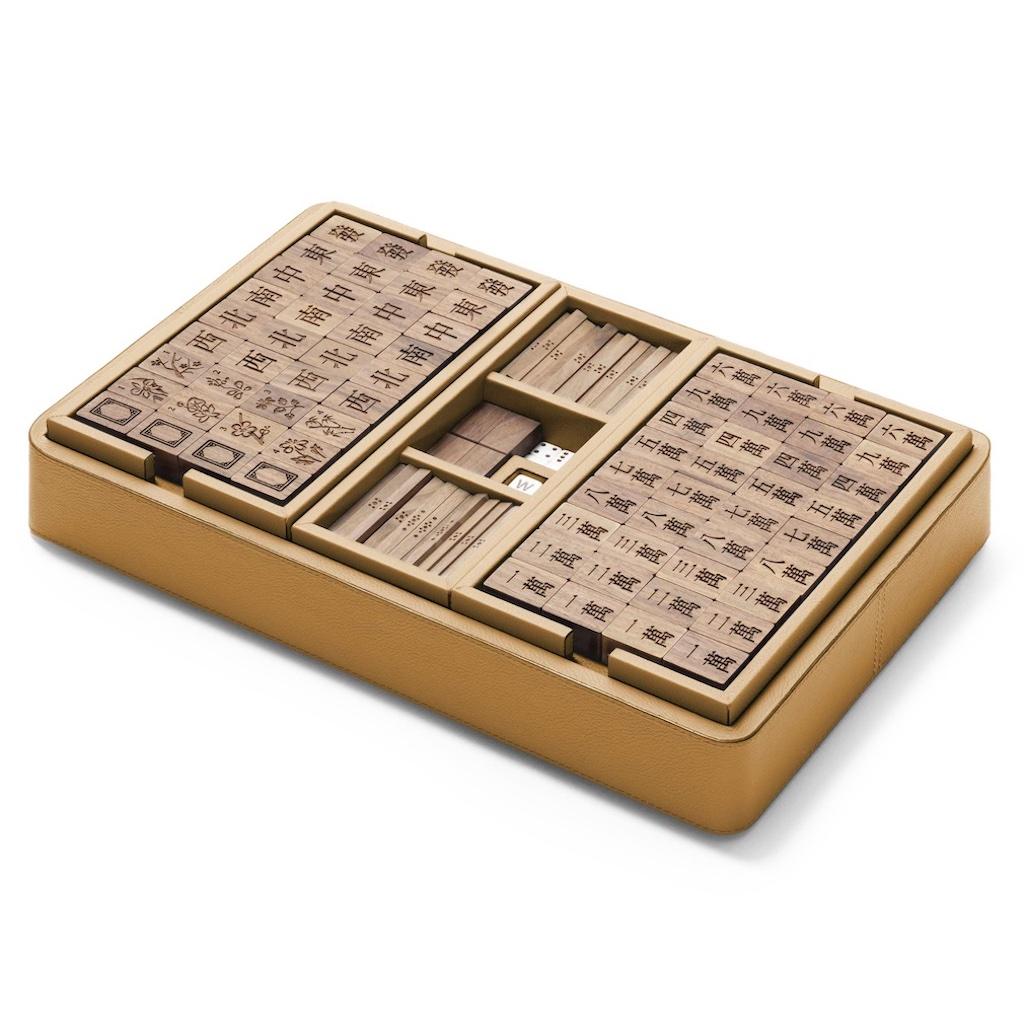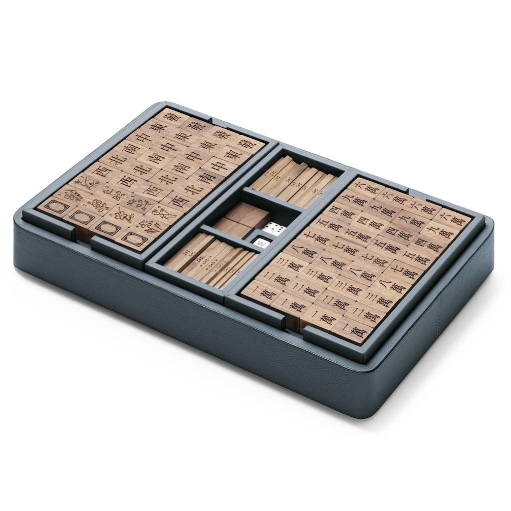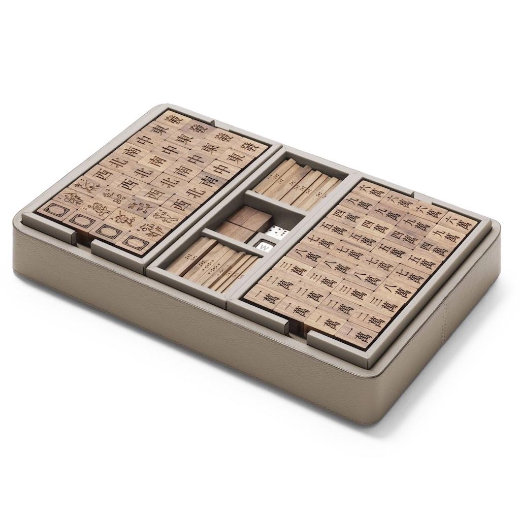 Traditional Chinese tile-based game that has gained popularity worldwide during the 1920s. Presented in a precious leather-covered wood case with removable top, this set makes an amazing gift for any board game enthusiast.