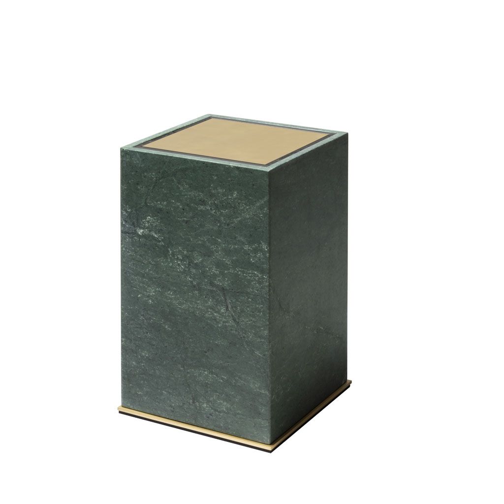 Marble structure with brass base frame and tilting lid.