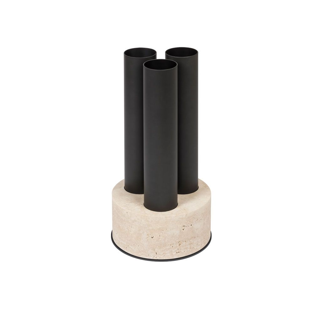 Being haracterized by essential geometric volumes that intersect each other, the Ulisse umbrella stands feature monolithic marble bases which host removable thin metal tubes available in different finishes.