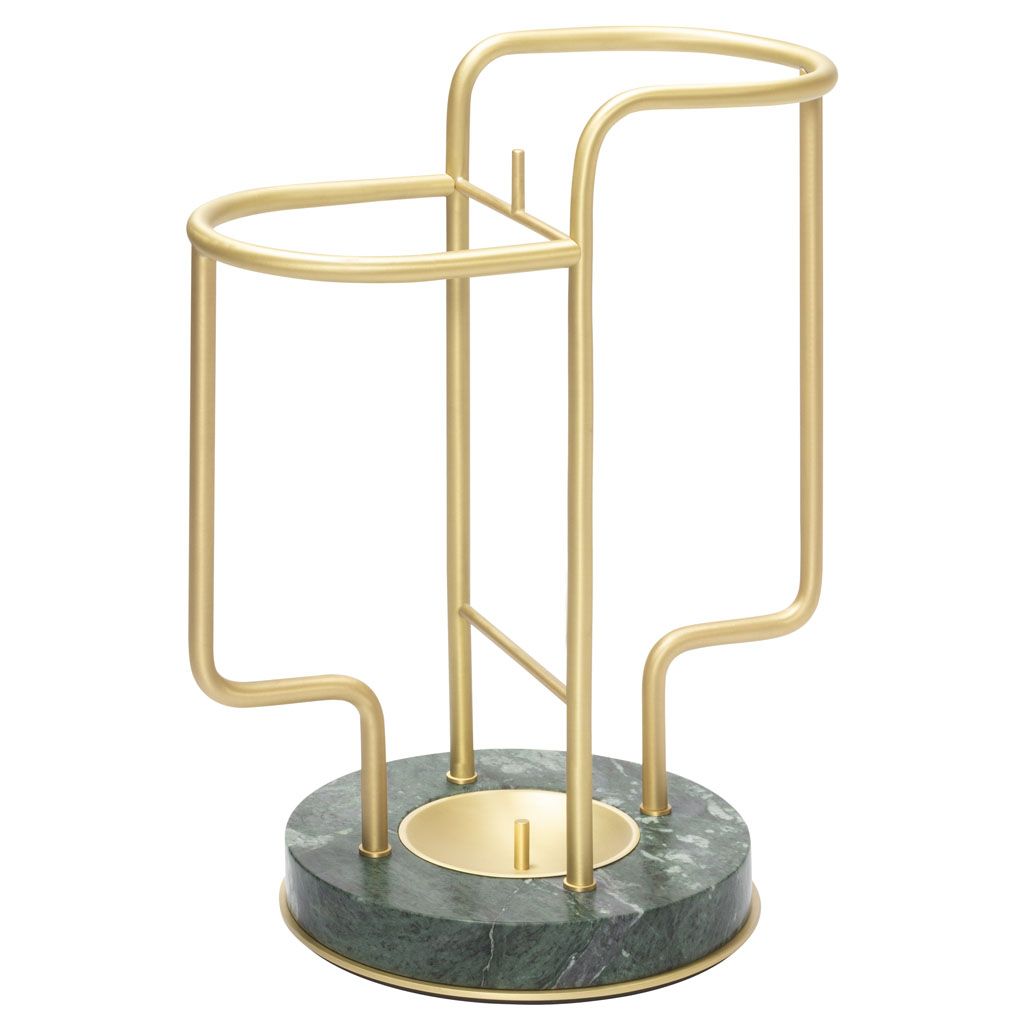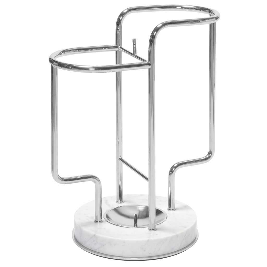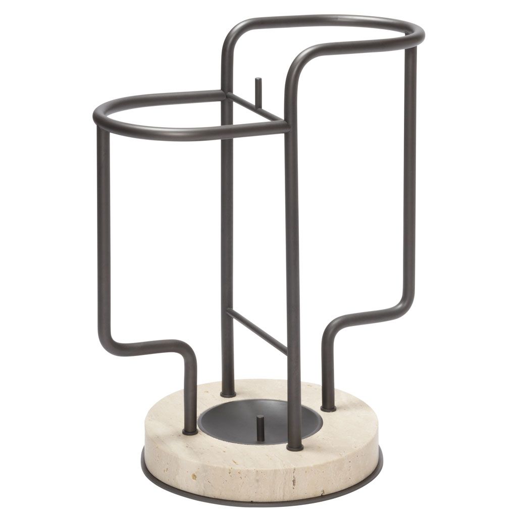 Characterized by a sinuous, light metal structure available in three finishes of choice, and a massive marble base with metal frame that ensures perfect stability, the Vincent umbrella stand plays with strong contrasts of materials and consistencies and boasts unique, elegant lines, perfectly blending functionality and beauty.