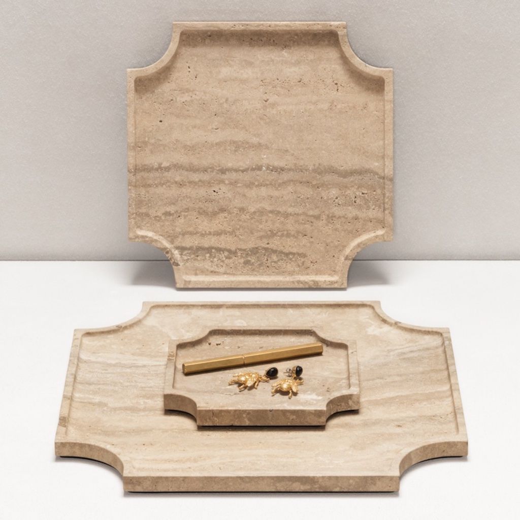 Vitruvio is a collection of travertine valet trays available in a variety of sizes, shapes and colors, which takes inspiration from Classical architectural models and translates them in a graphic contemporary visual language.