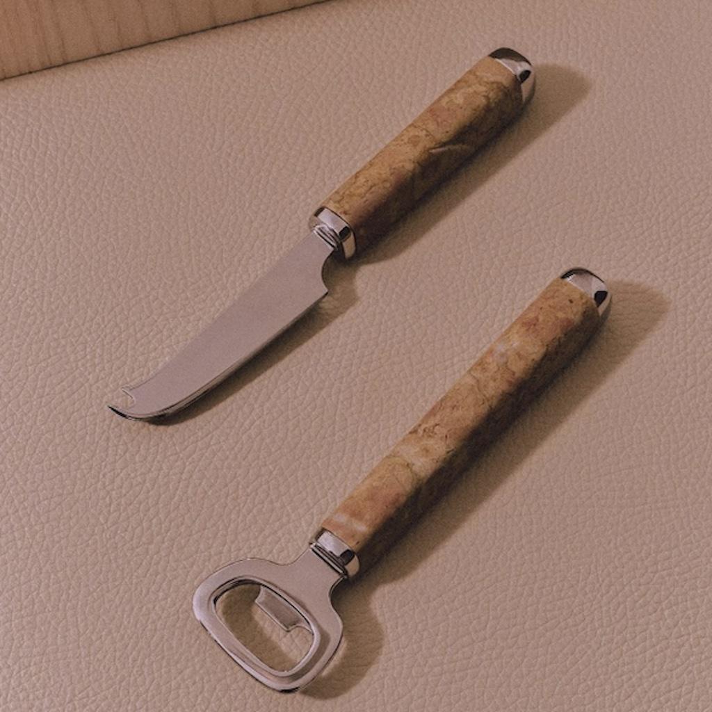 Crafted in polished stainless steel with marble accents for added sophistication. Characterized by soft, flowing lines that evoke an organic quality, this accessory is perfect for the discerning collector.