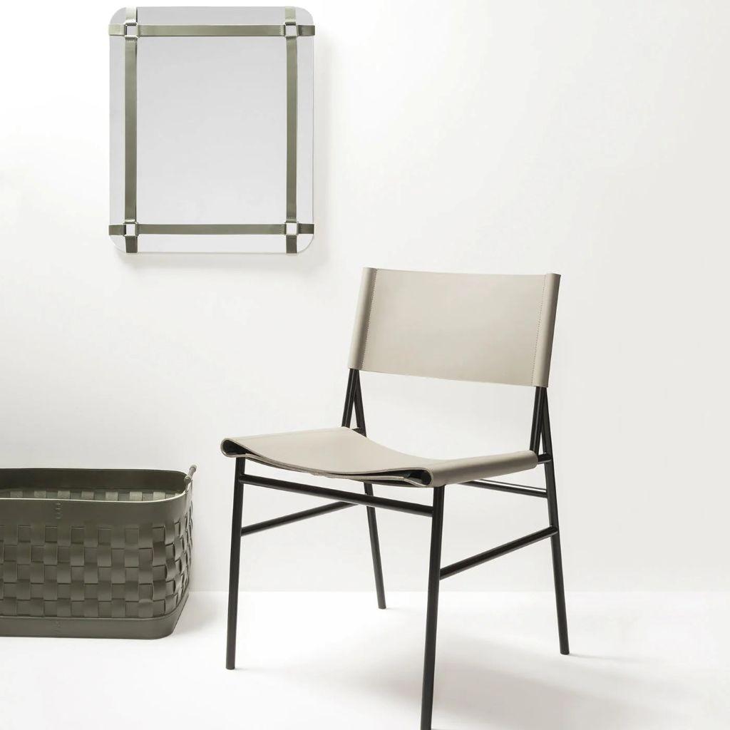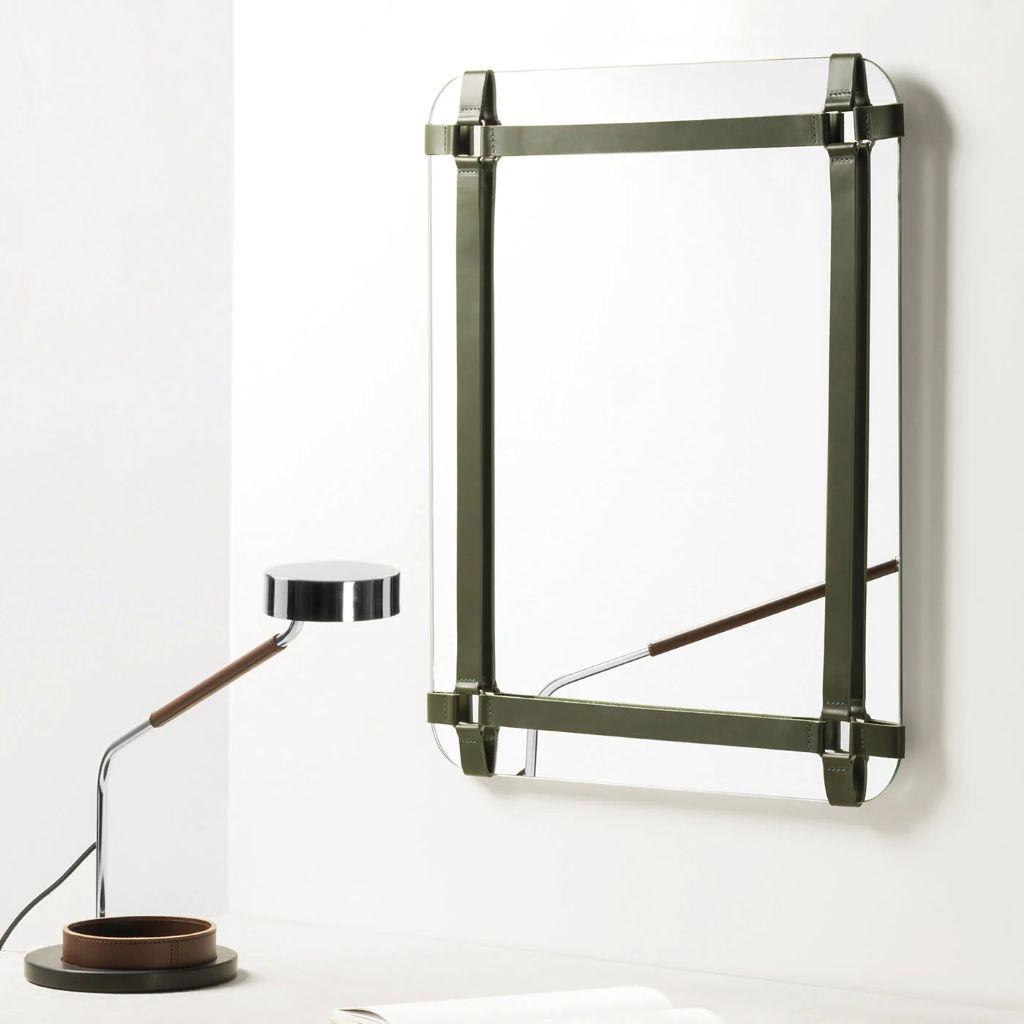 Wall mirrors with saddle leather frame.