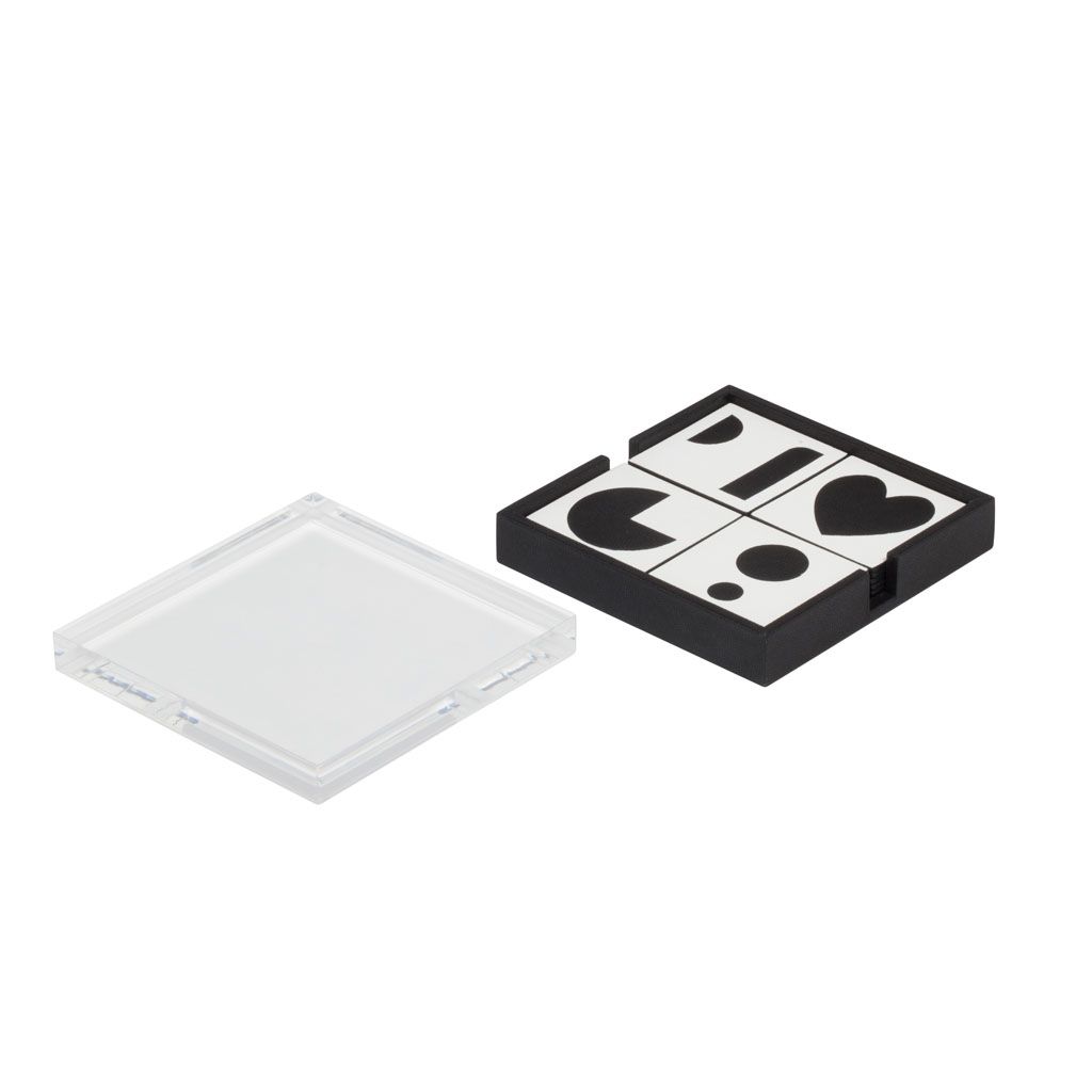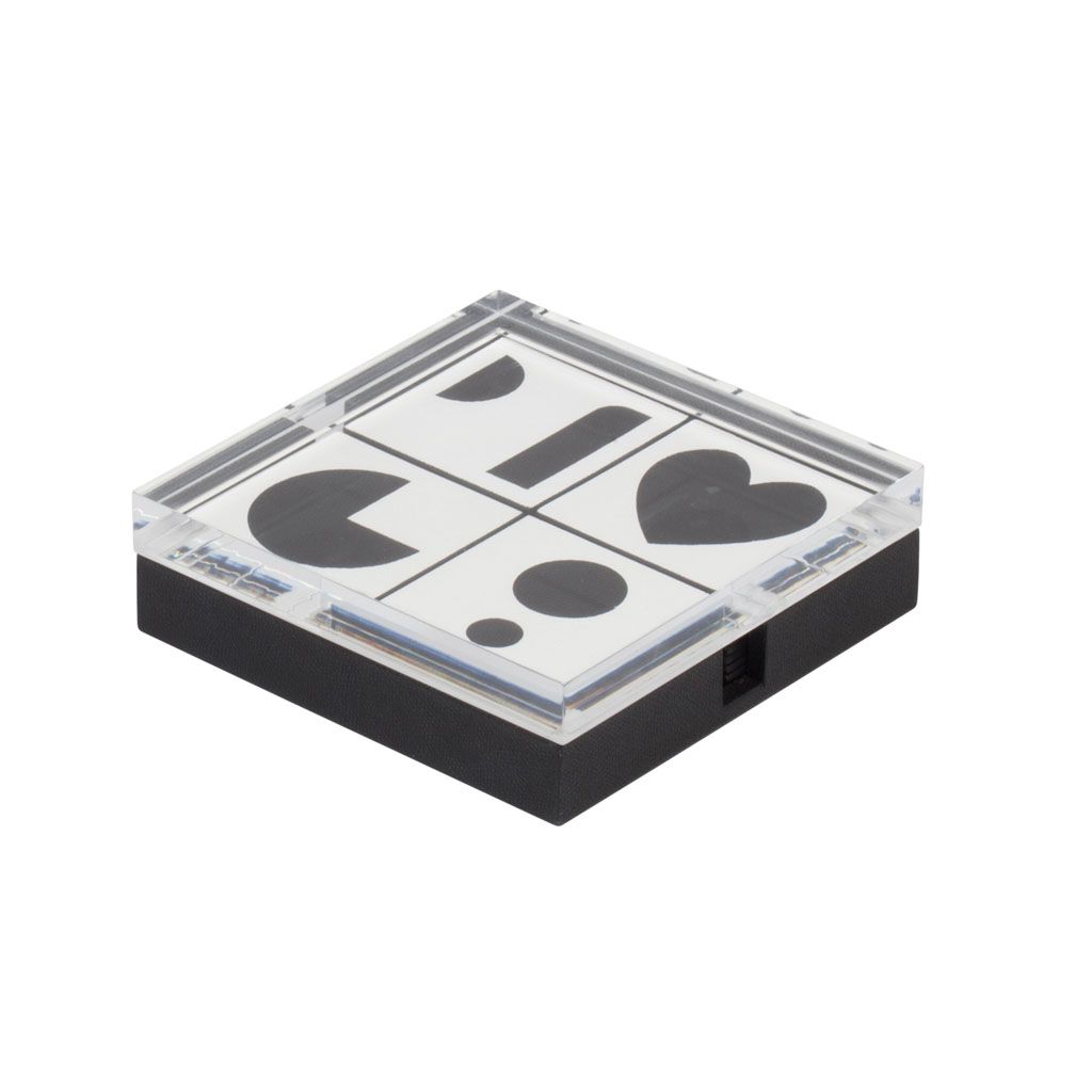 A nod to the childhood game, this Memory game in leather marquetry draws its inspiration from the 20th-century art and design vocabulary favored by the avant garde of the Thirties, the works of Sol Lewitt and objects and illustations by Enzo Mari.