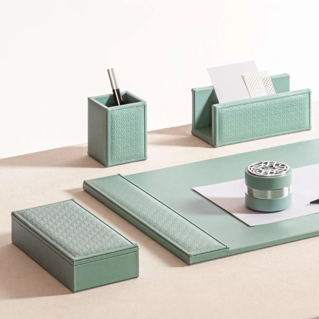 Desk set with padded leather inserts featuring the ELIE SAAB Monogram pattern.