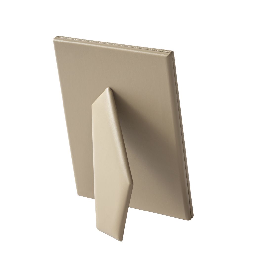 Padded leather frame with polished palladium trim featuring the exclusive ELIE SAAB Monogram pattern.
