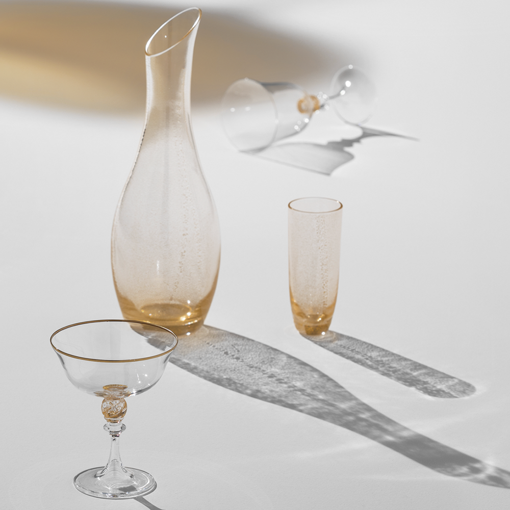 Entirely handcrafted blown glass with gold leaf.
