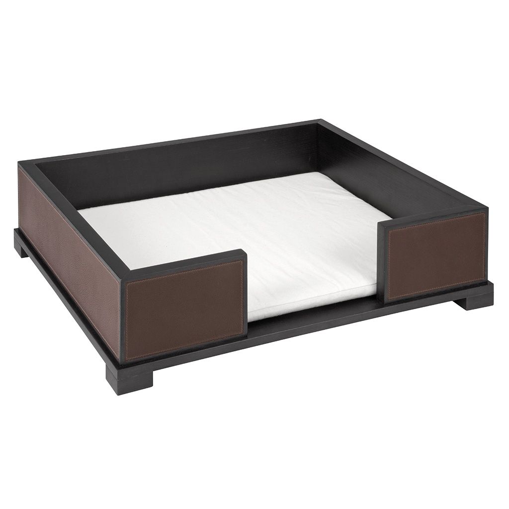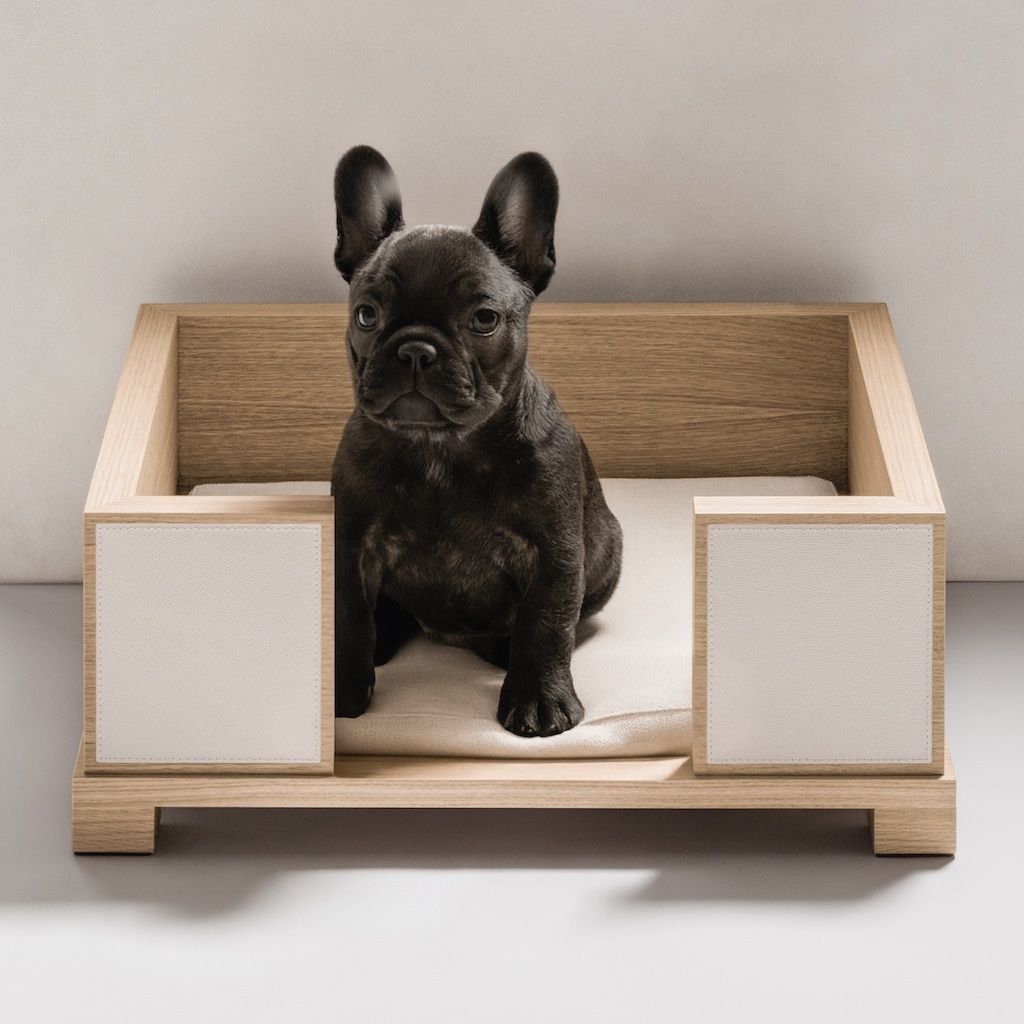 Oak frame (available in three finishes) with embedded leather on the outside.