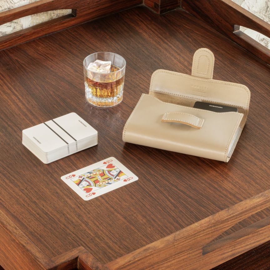 Water resistant saddle leather playing card holder.