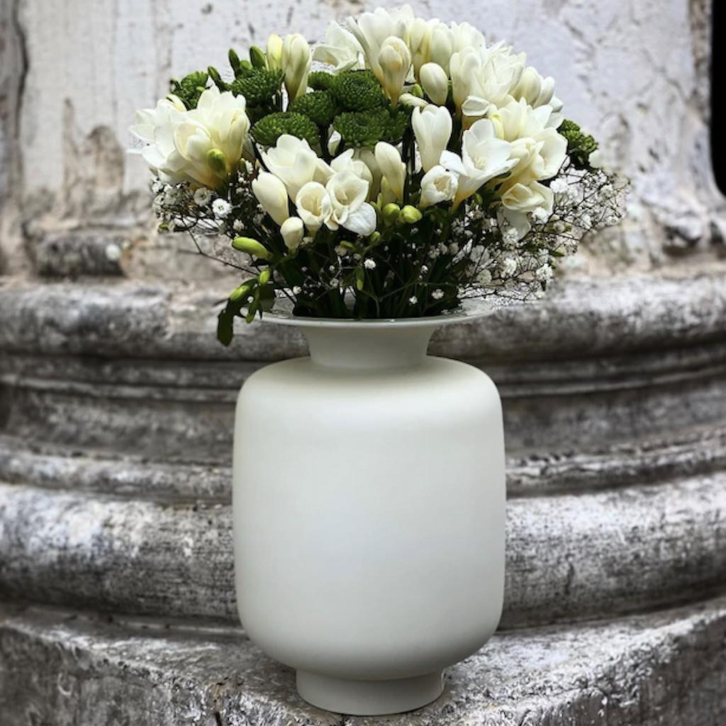 In a delicate pastel yellow, this vase is far more than just a vessel for flowers. It is a design-oriented object that forms an attractive contrast to glossy porcelain tableware with its matt, inviting surface. Whether in combination with the purist white shapes of FLUEN or the expressive decors such as "Shifting Colors" - the vase is a flexible addition to any modern living environment, whether as a stand-alone piece or in combination with other tableware from the collection.