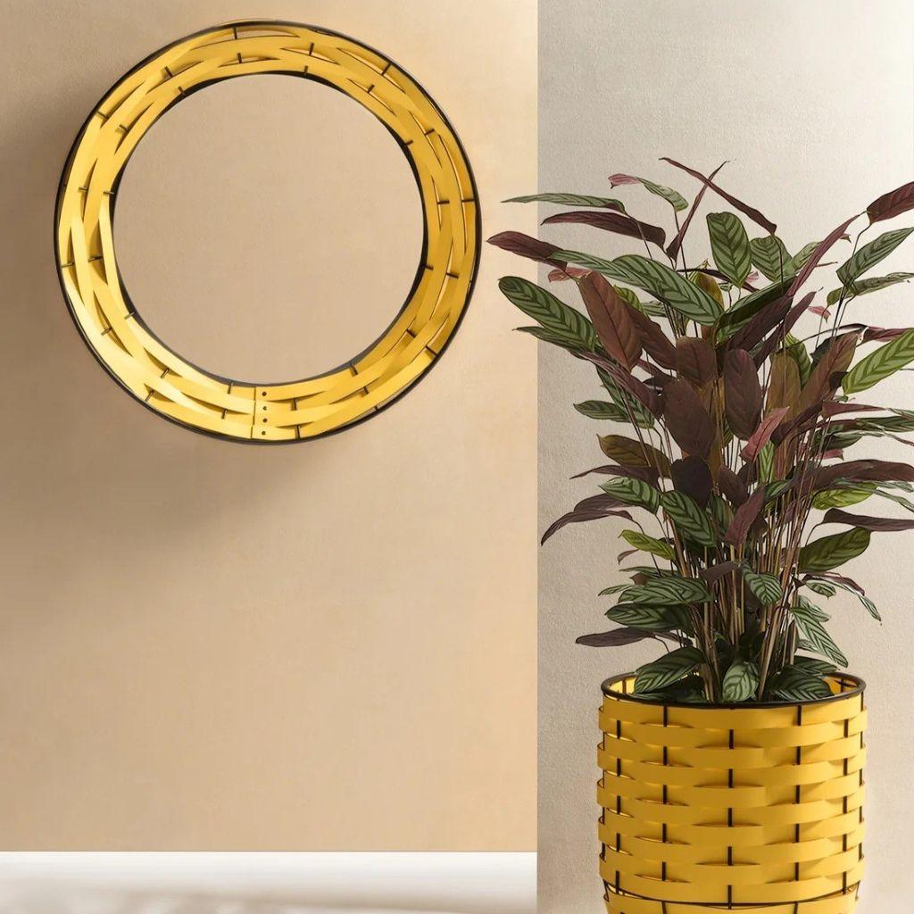 The framework of this series boasts a sophisticated dark-stained aluminum structure and a vibrant Tecnocuoio weaving, providing not only durability but also a touch of contemporary elegance. This sleek combination of materials ensures stability while adding a subtle yet striking visual appeal to the mirrors.