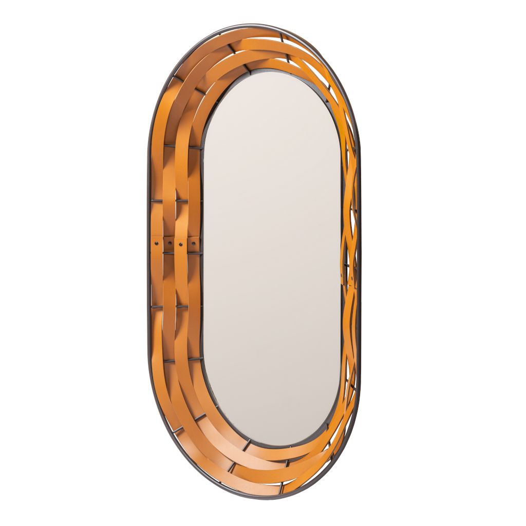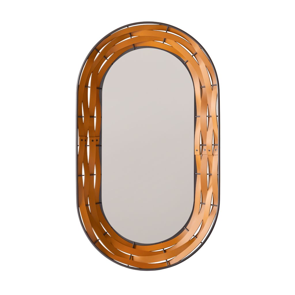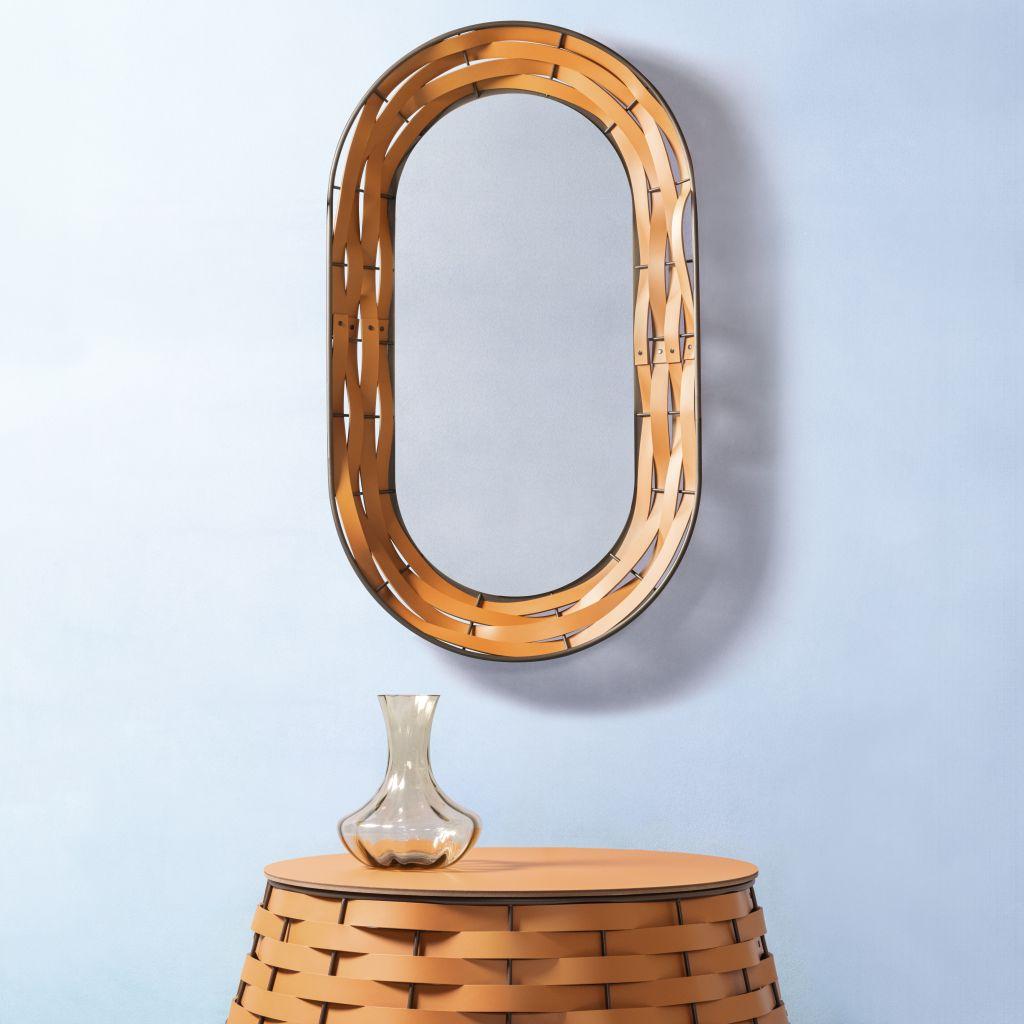 The framework of this series boasts a sophisticated dark-stained aluminum structure and a vibrant Tecnocuoio weaving, providing not only durability but also a touch of contemporary elegance. This sleek combination of materials ensures stability while adding a subtle yet striking visual appeal to the mirrors.