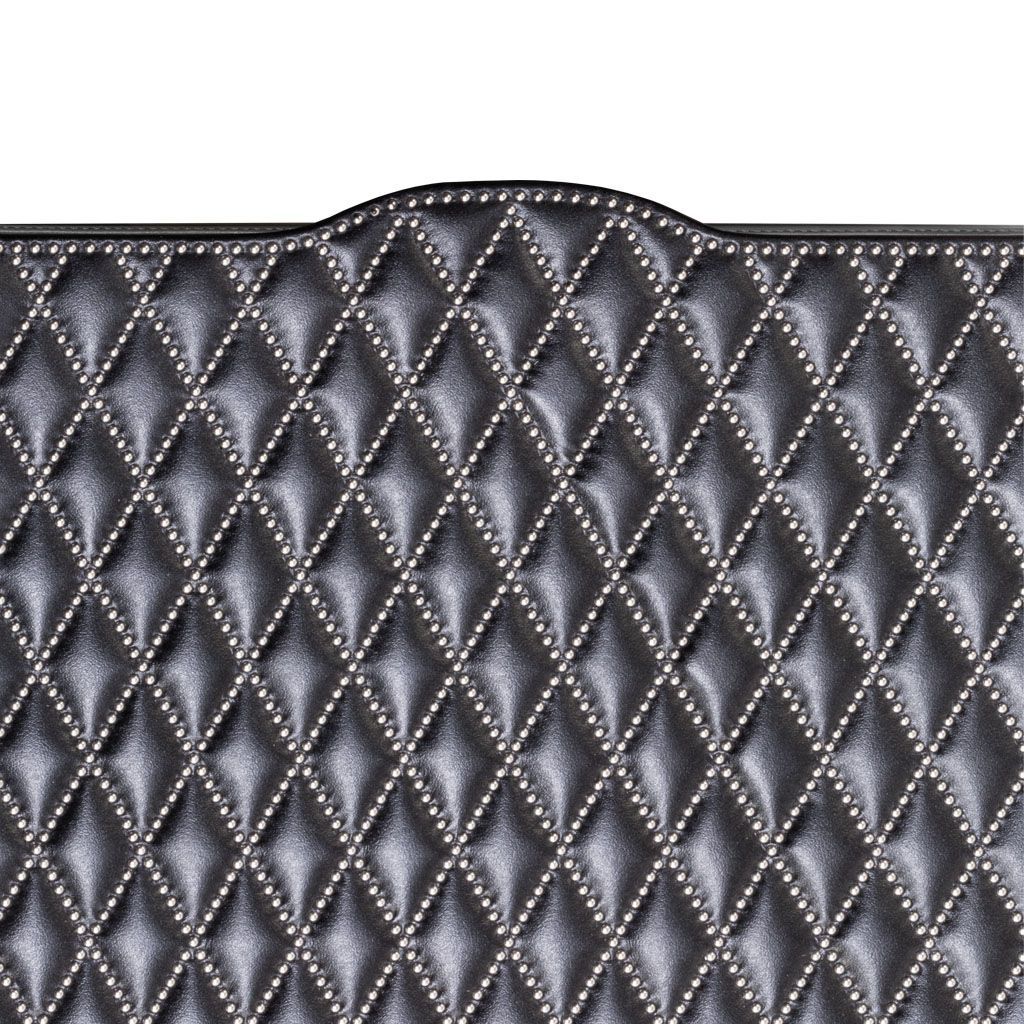Leather covered wood structure with either a diamond or straight lines quilt pattern generated by the juxtaposition of small studs; with hinged lid.