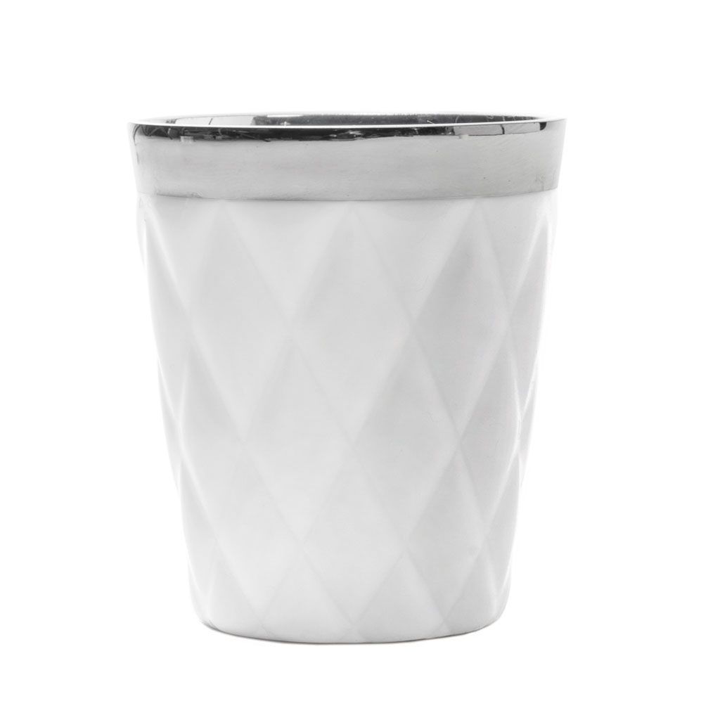 Inner partitions to host coffee scoops and sugar, 6 Nespresso capsules, 2 porcelain bowls with platinum rim recalling the same motif of the lid, and 2 nesting rectangular saucers included.