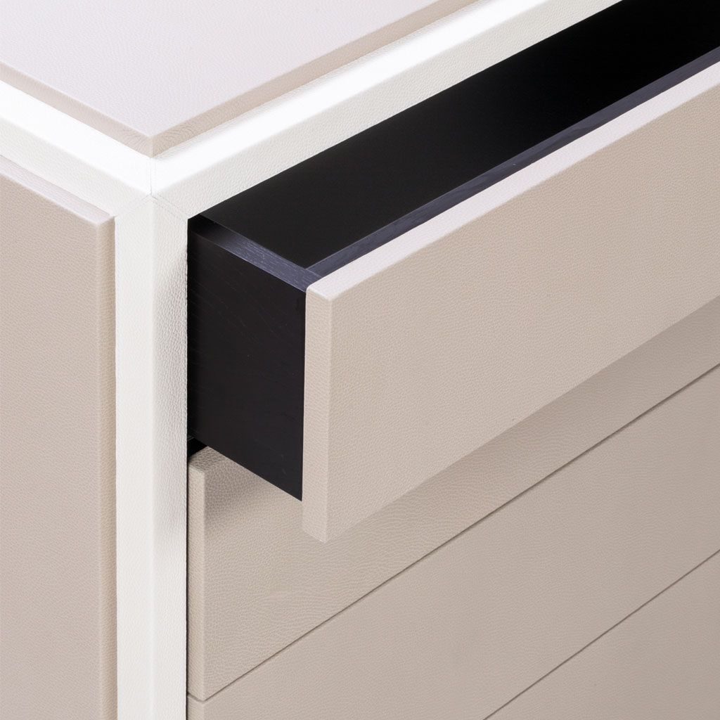 Special soft closing drawers with push-pull opening system and inner suede lining.