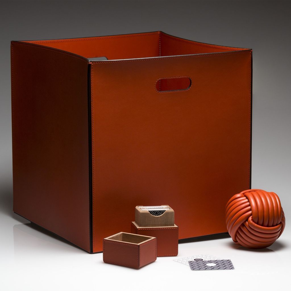 All leather structure with side handles.