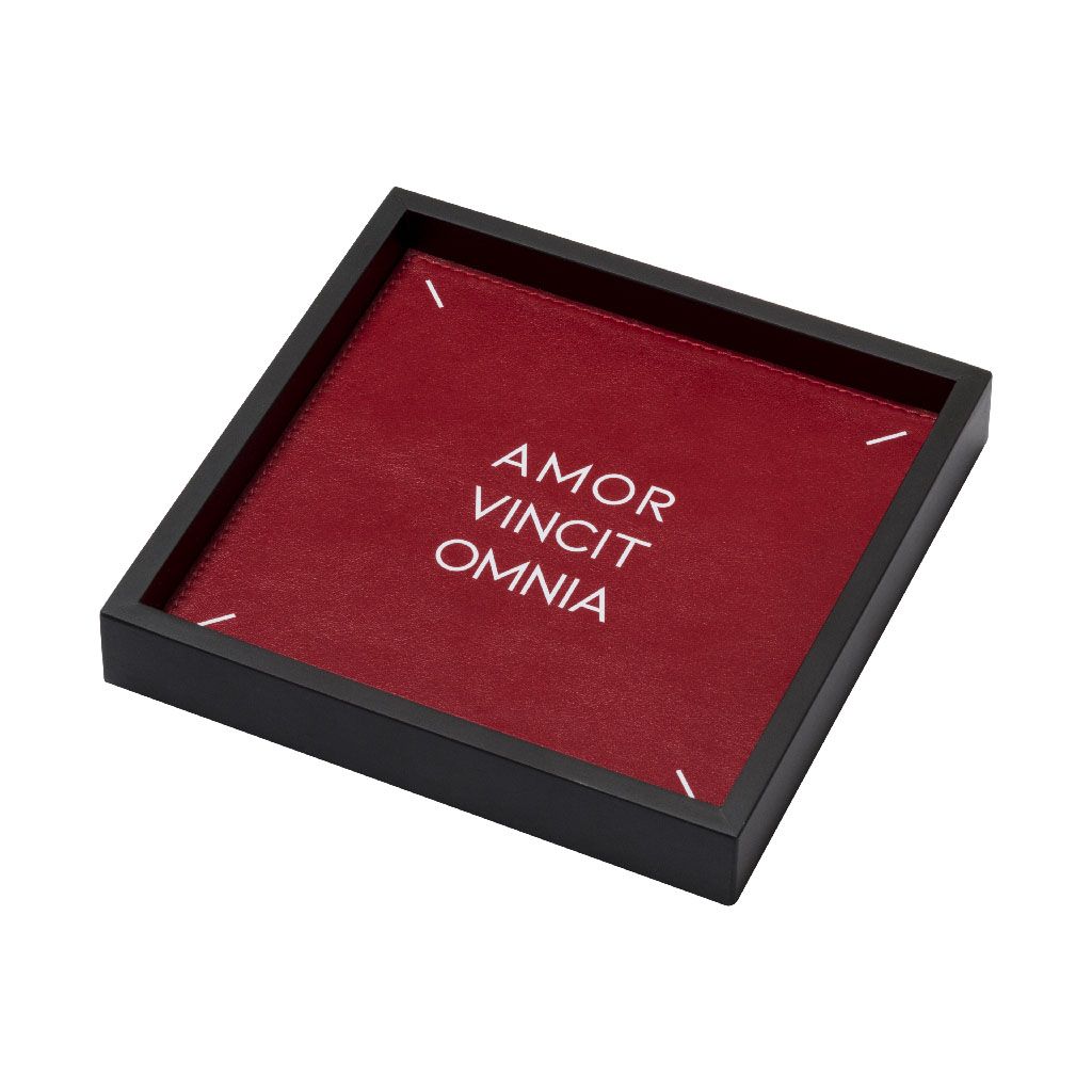 Showcasing ancient mottos taken from the latin tradition, the Heritage collection features walnut and wenge wood valet trays with printed leather lining.