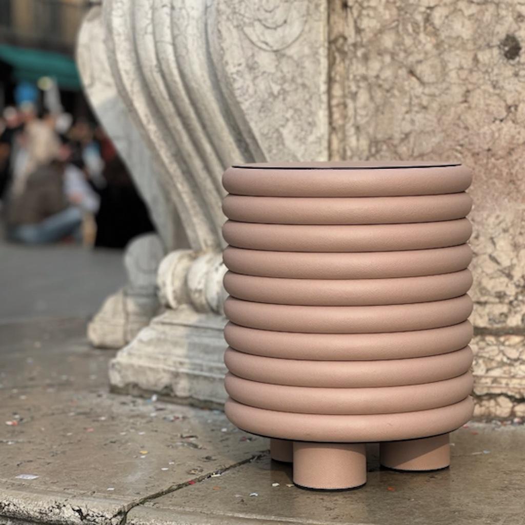 This line of forniture was inspired by the "stacked" shape often seen at the base of some buildings in Italy, as well as Salvatore Ferragamo's celebrated heel.
