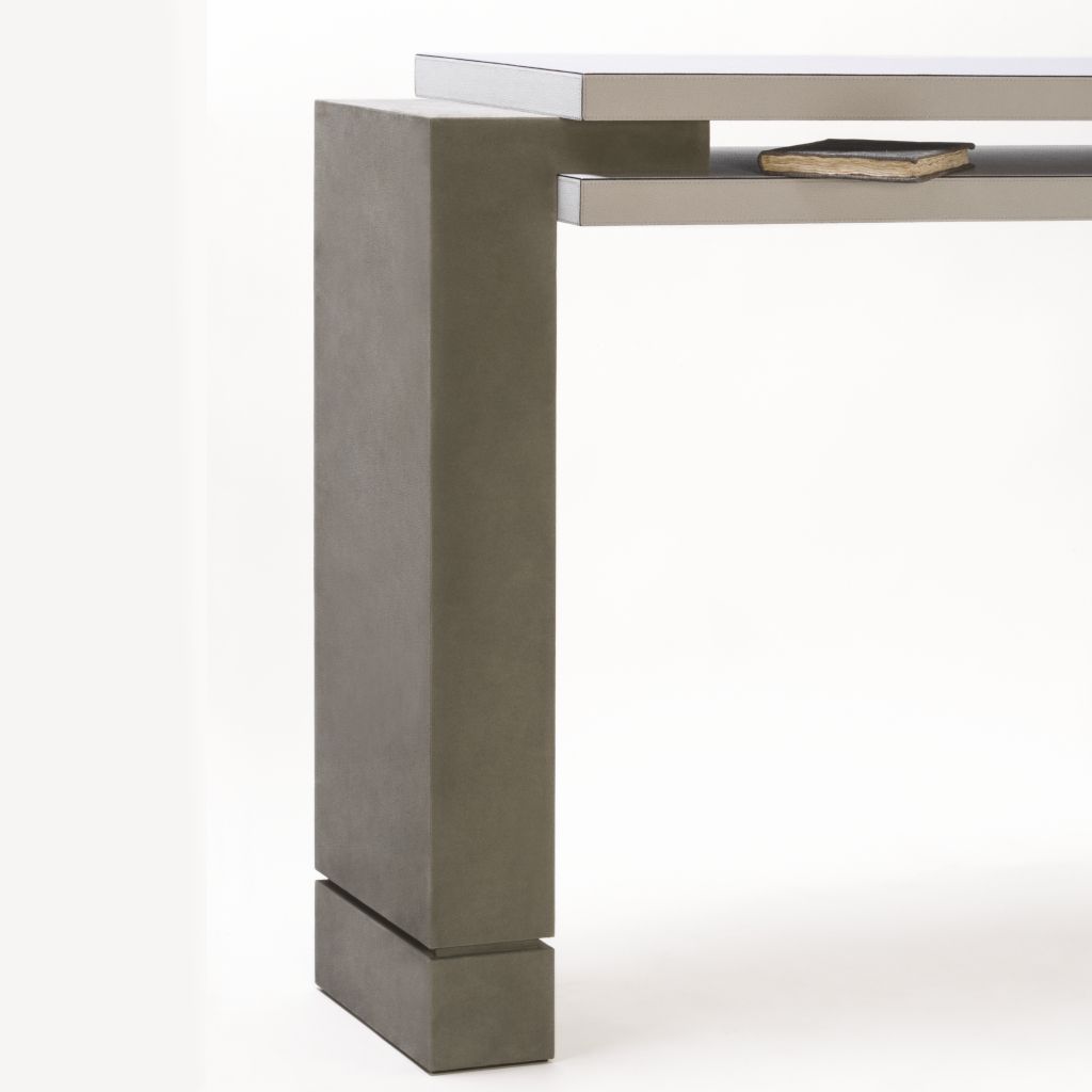 As a neobrutalist architecture, designed with recurrent modular volumes, these tables, consoles and desks, feature and convey a sense of immutability that makes them particularly attractive in our chaotic and crumbling world.